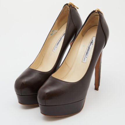 Brian Atwood Brown Leather Chain Heel Platform Pumps Size 38.5