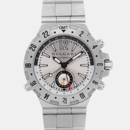 Bvlgari Silver Stainless Steel Diagono GMT40S Automatic Men’s Wristwatch 40 mm
