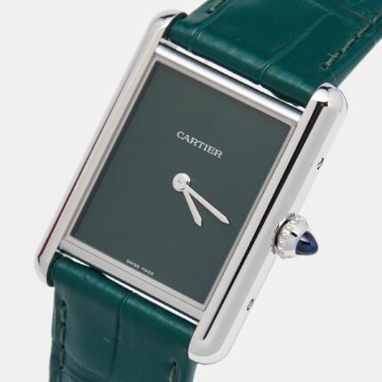 Cartier Green Stainless Steel Alligator Leather Tank Must WSTA0056 Women’s Wristwatch 25.50 mm