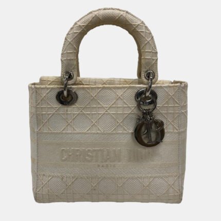 Dior Beige Canvas Lady D-Lite Medium Tote Bag