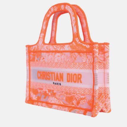 Dior Neon Orange Canvas Mini Book Tote Bag