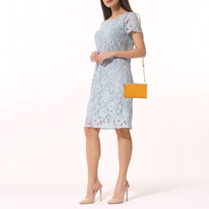 Dkny Mustard Leather Double Zip Crossbody Bag