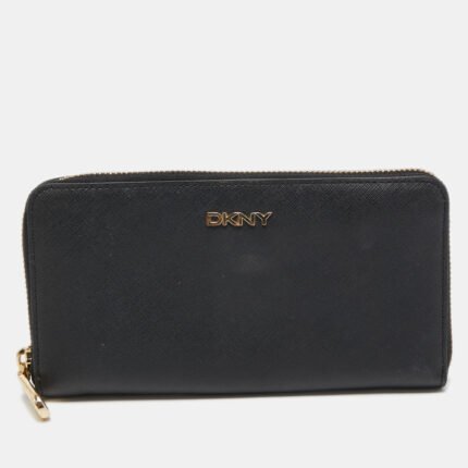 DKNY Black Leather Bryant Park Zip Around Wallet