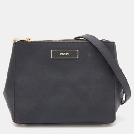 Dkny Black Saffiano Leather Double Zip Crossbody Bag