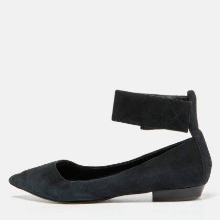Giuseppe Zanotti Black Suede Ankle Strap Ballet Flats Size 37