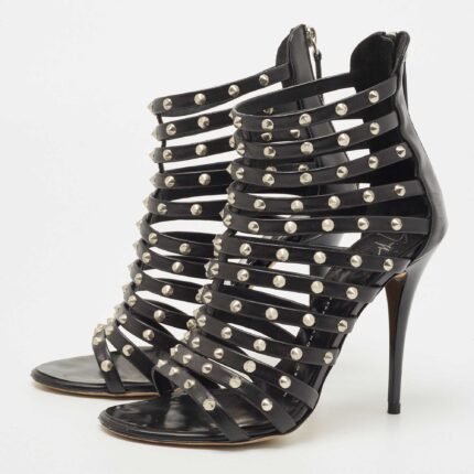 Giuseppe Zanotti Black Leather studded Strappy Sandals Size 36.5