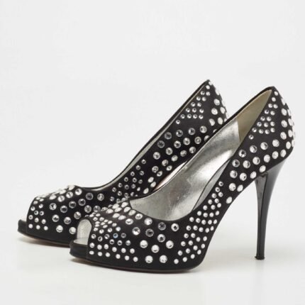 Giuseppe Zanotti Black Satin Crystal Embellished Peep Toe Platform Pumps Size 36