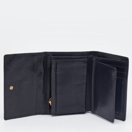 MCM Black Quilted Leather Embellished Flap Compact Wallet