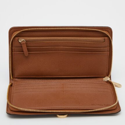 Michael Kors Brown Signature Coated Canvas Zip Around Wallet