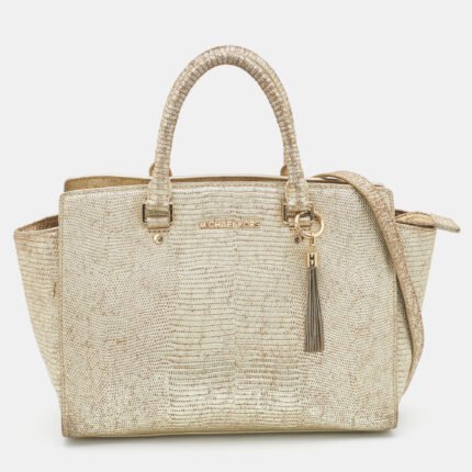 MICHAEL Michael Kors Gold Snakeskin Embossed Leather Large Selma Satchel