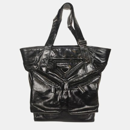 Prada Black Leather Triangle Logo Tote Bag