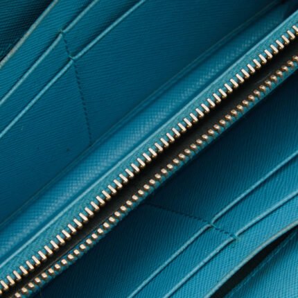 Prada Blue Saffiano Lux Leather Zip Around Wallet