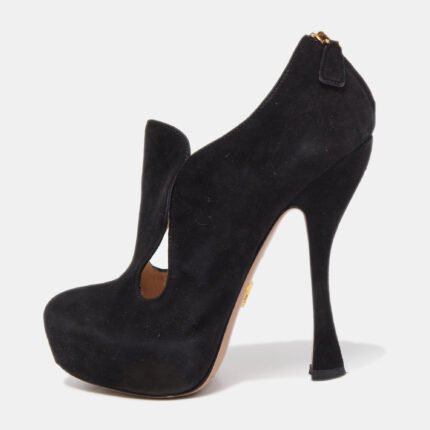 Prada Black Suede Zip detail Cut Out Platform Booties Size 36.5