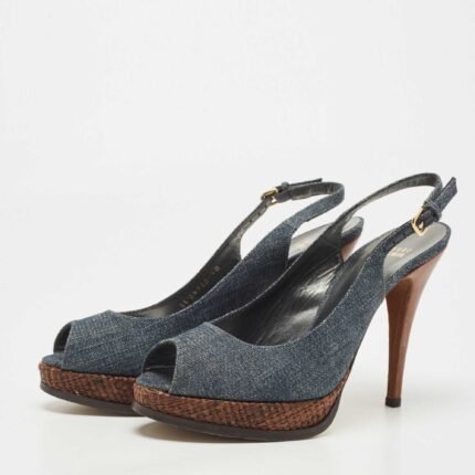 Stuart Weitzman Blue Denim Peep Toe Platform Slingback Sandals Size 40