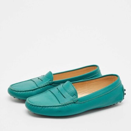 Tod’s Green Leather Gommino Slip On Loafers Size 37