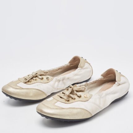 Tod’s White/Gold Leather Gomma Lace Up Loafers Size 36