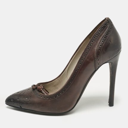 Tom Ford Brown Leather Bow Pointed Toe Pumps Size 37