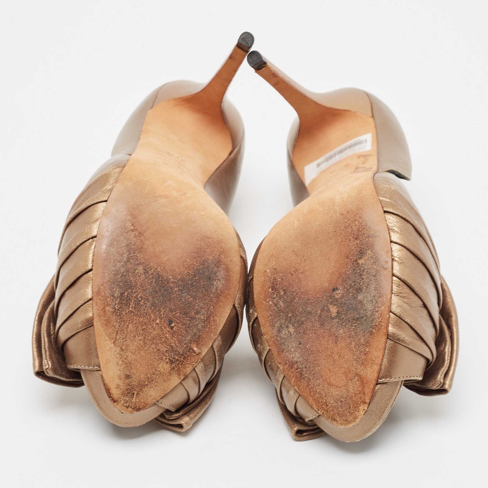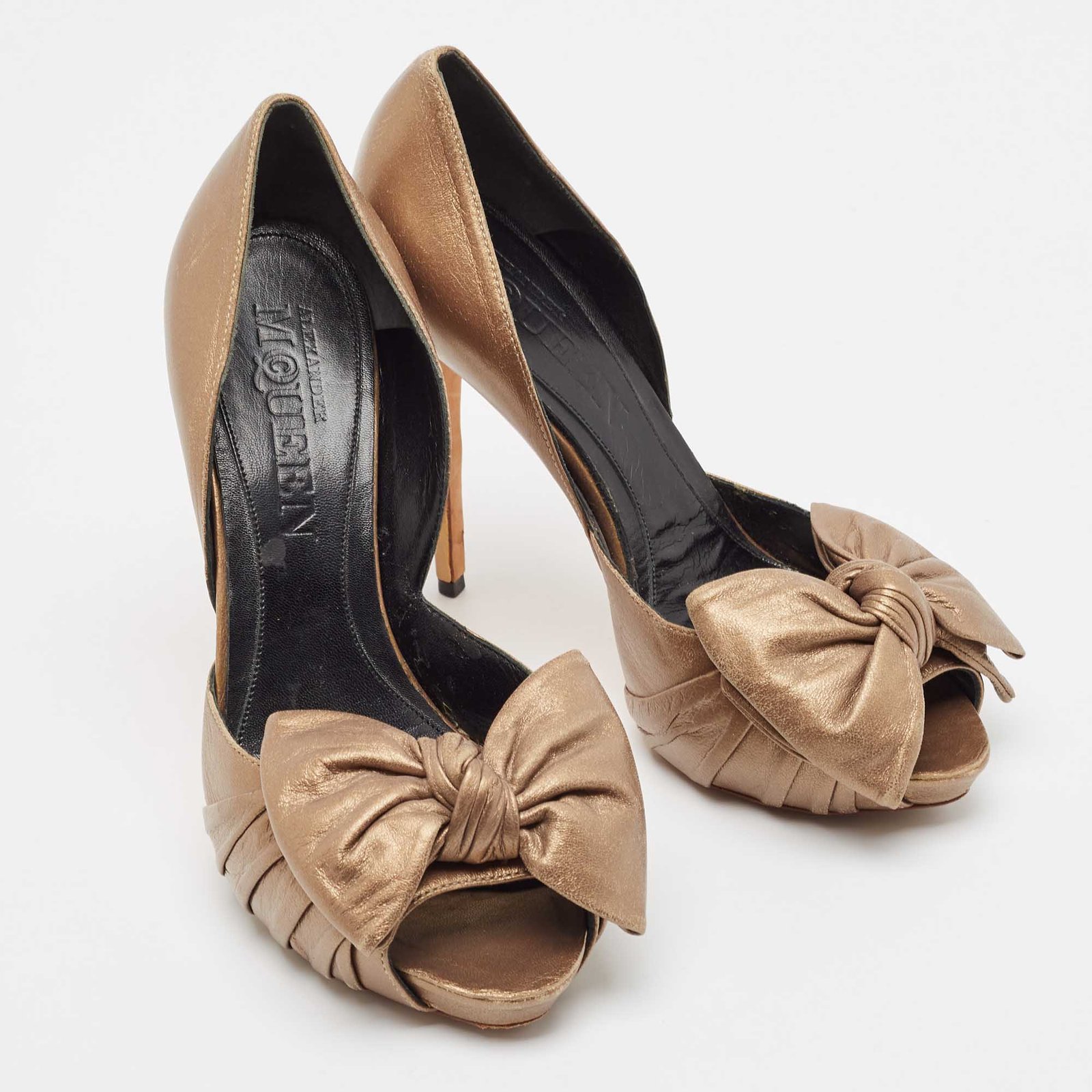Alexander McQueen Gold Leather Peep Toe Pumps Size 37.5