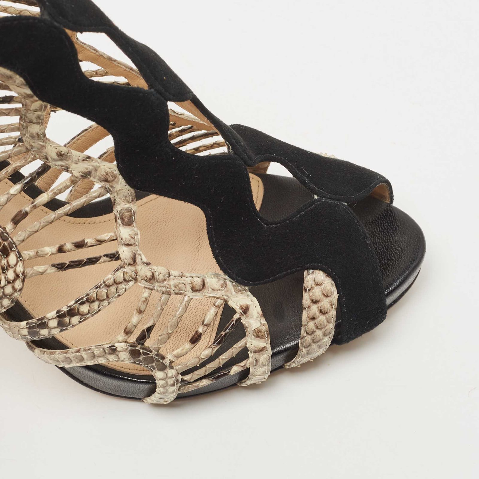 Alexandre Birman Black Suede and Python Leather Cut Out Slingback Sandals Size 40