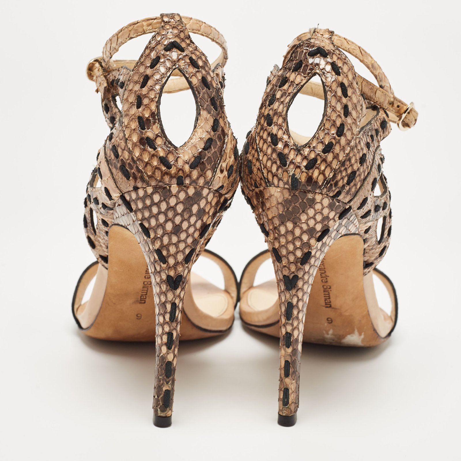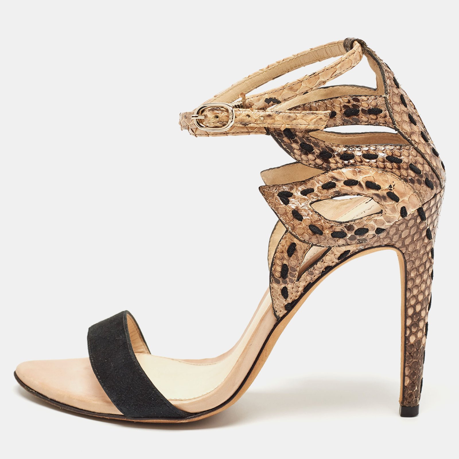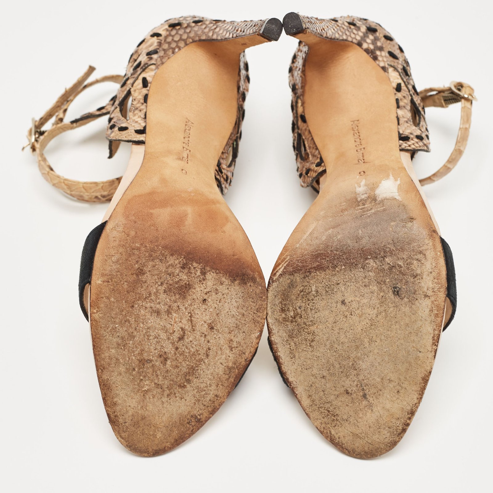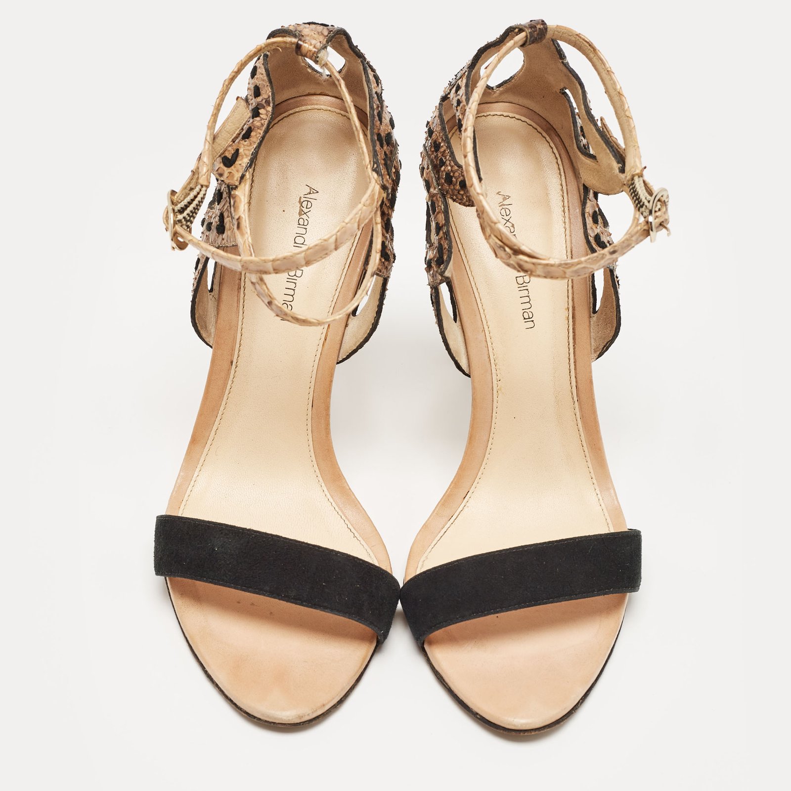 Alexandre Birman Tricolor Suede and Python Cut Out Ankle Strap Sandals Size 36.5