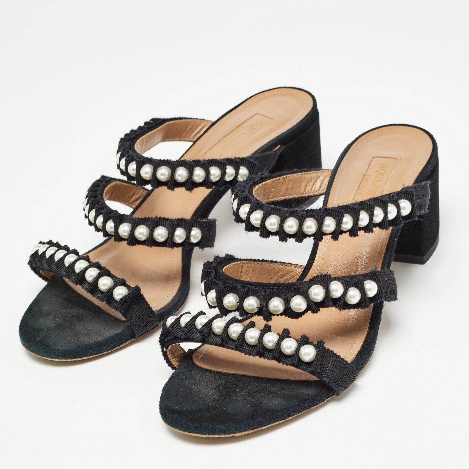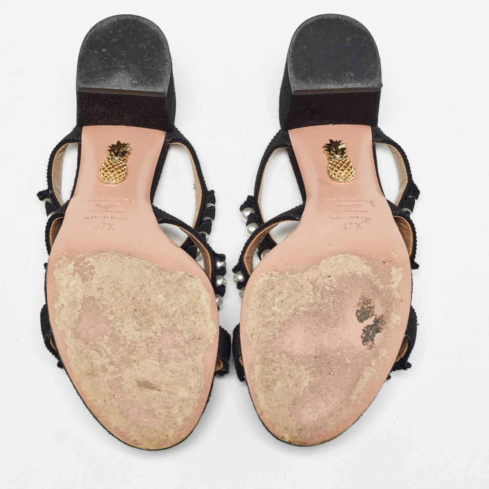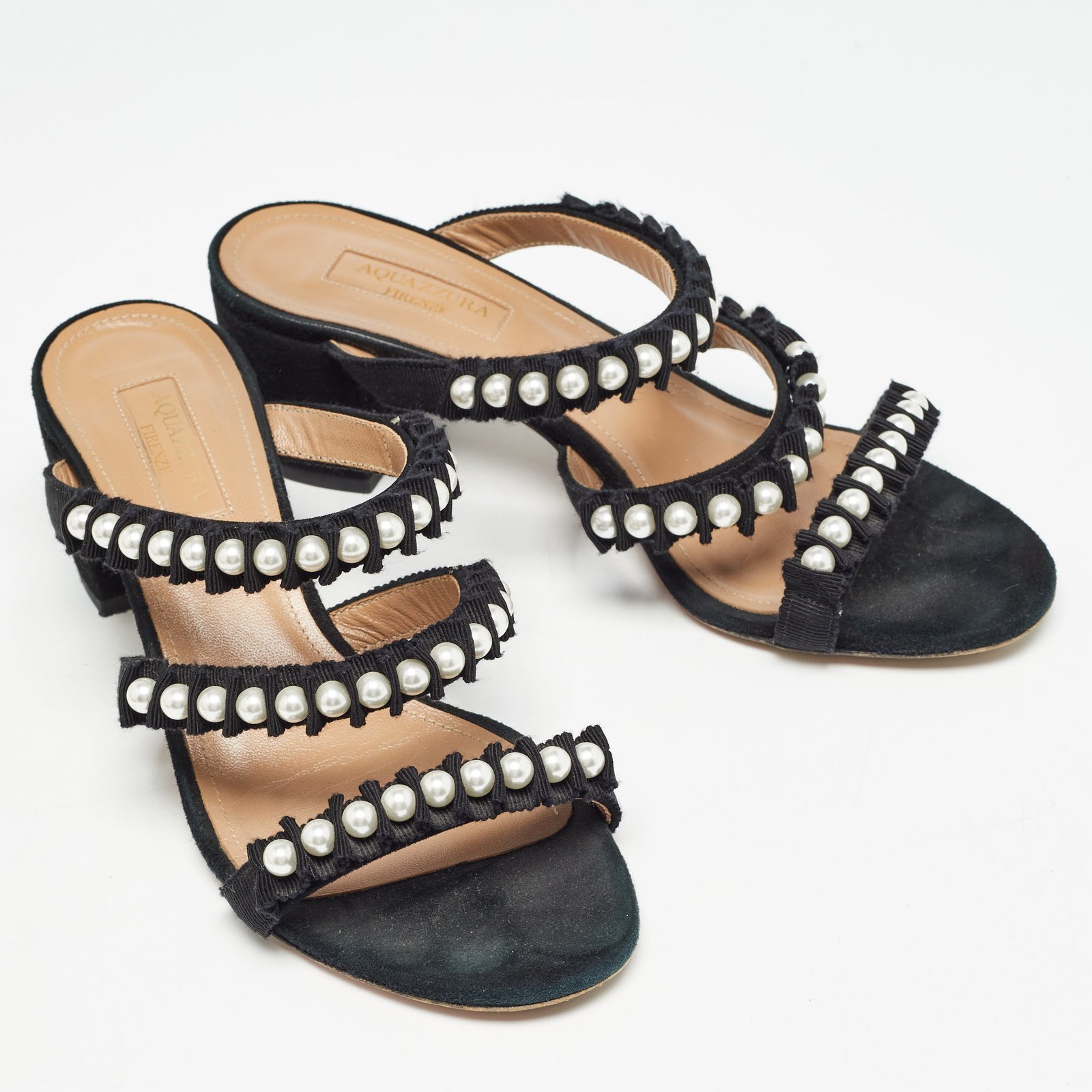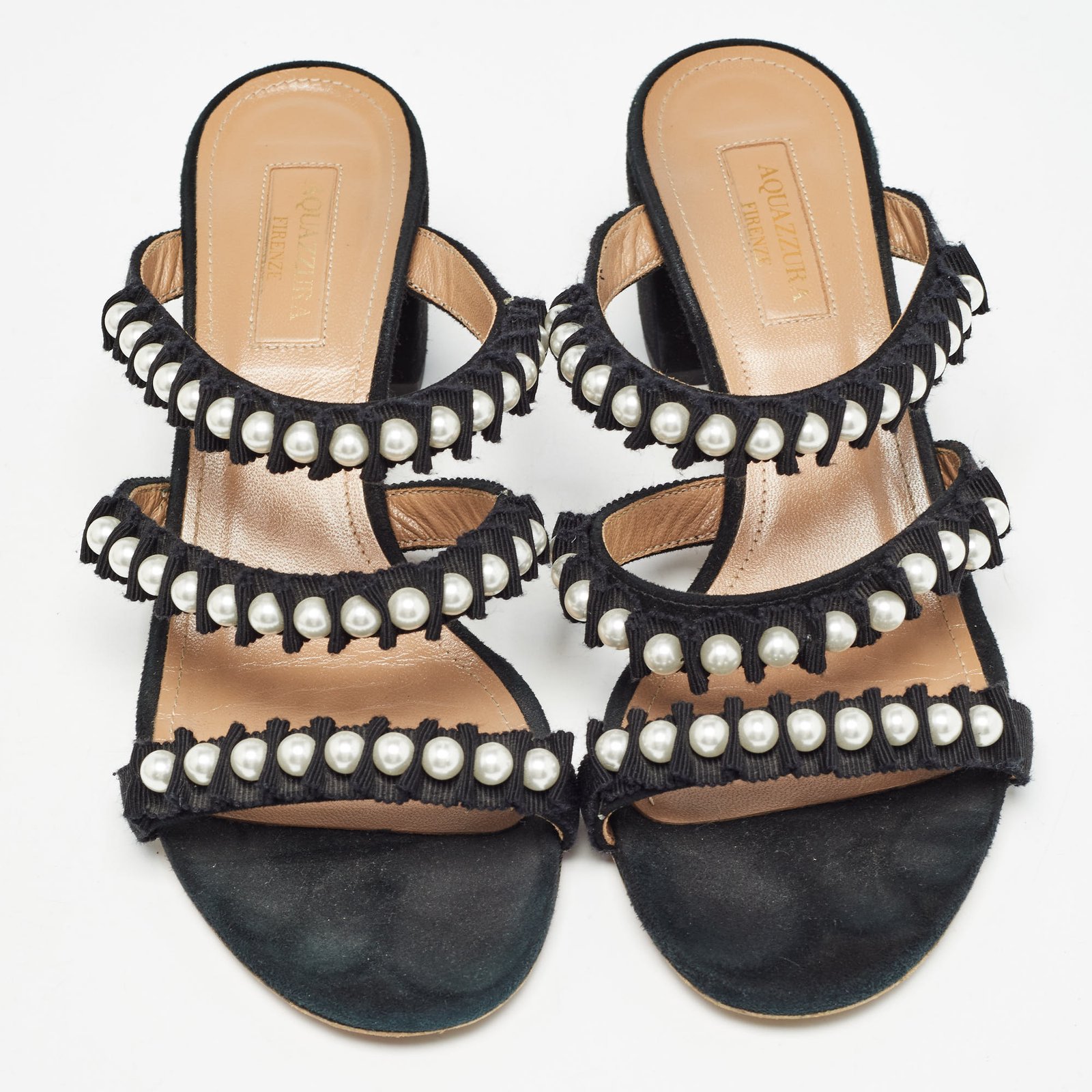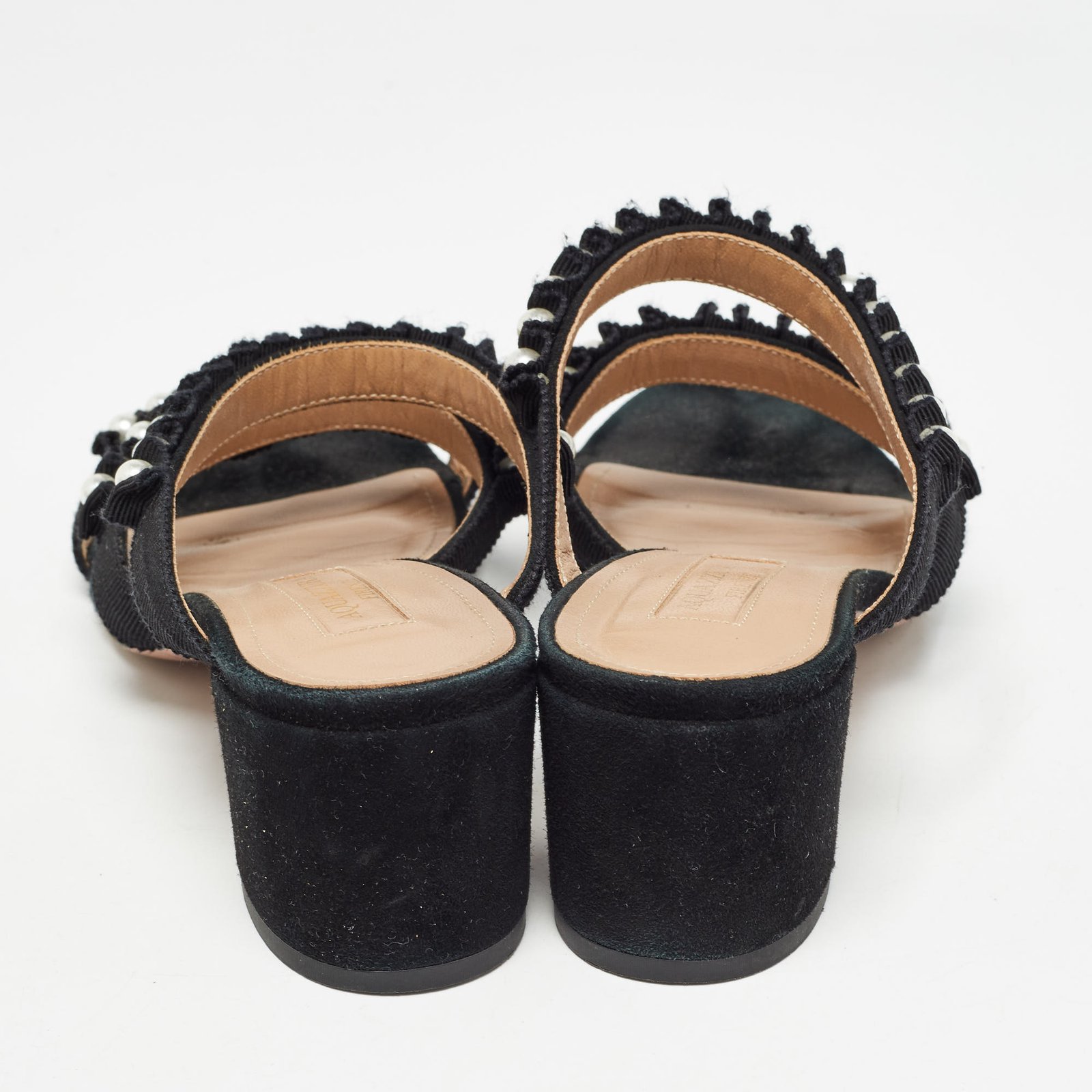 Aquazzura Black Suede and Canvas Love Story Slide Sandals Size 37.5