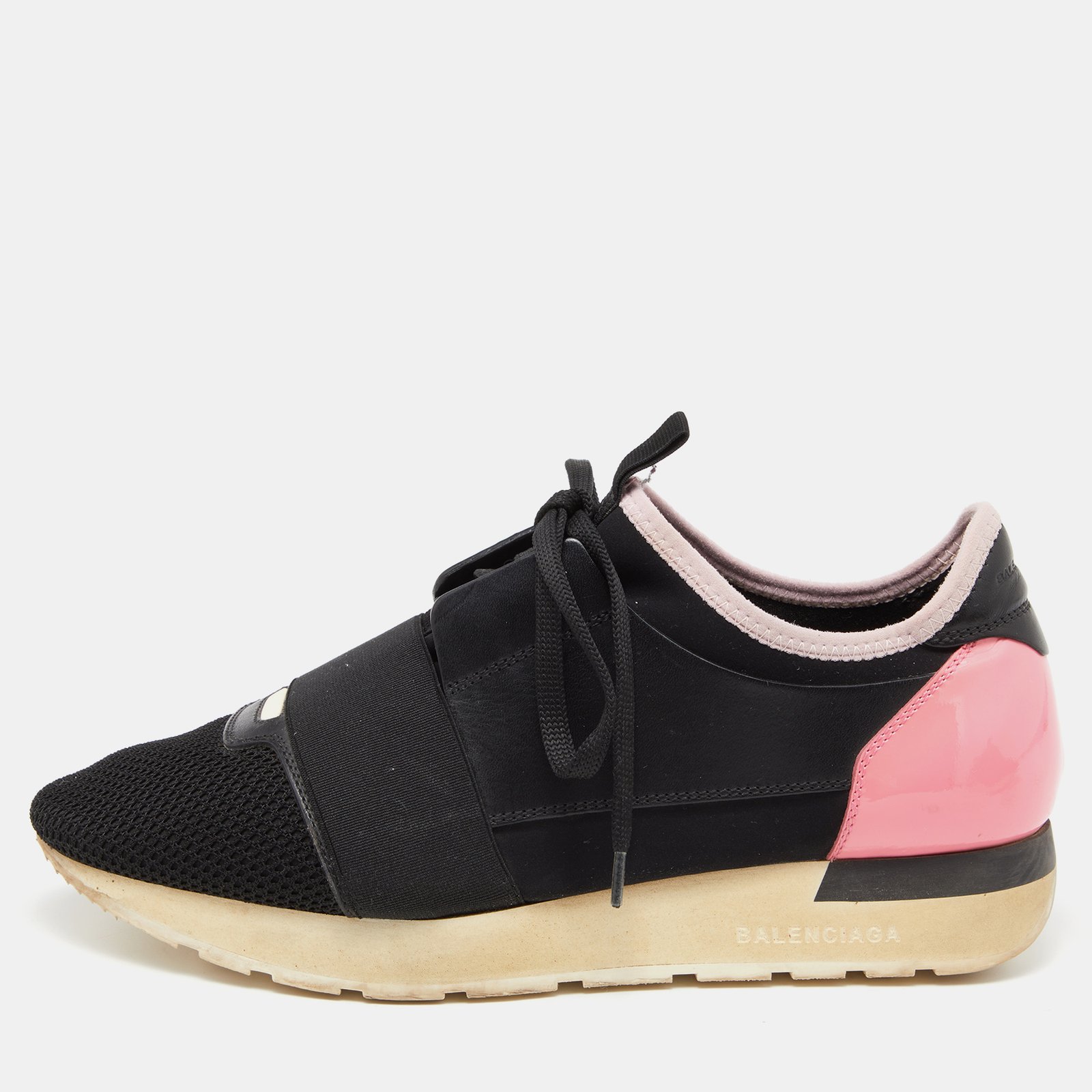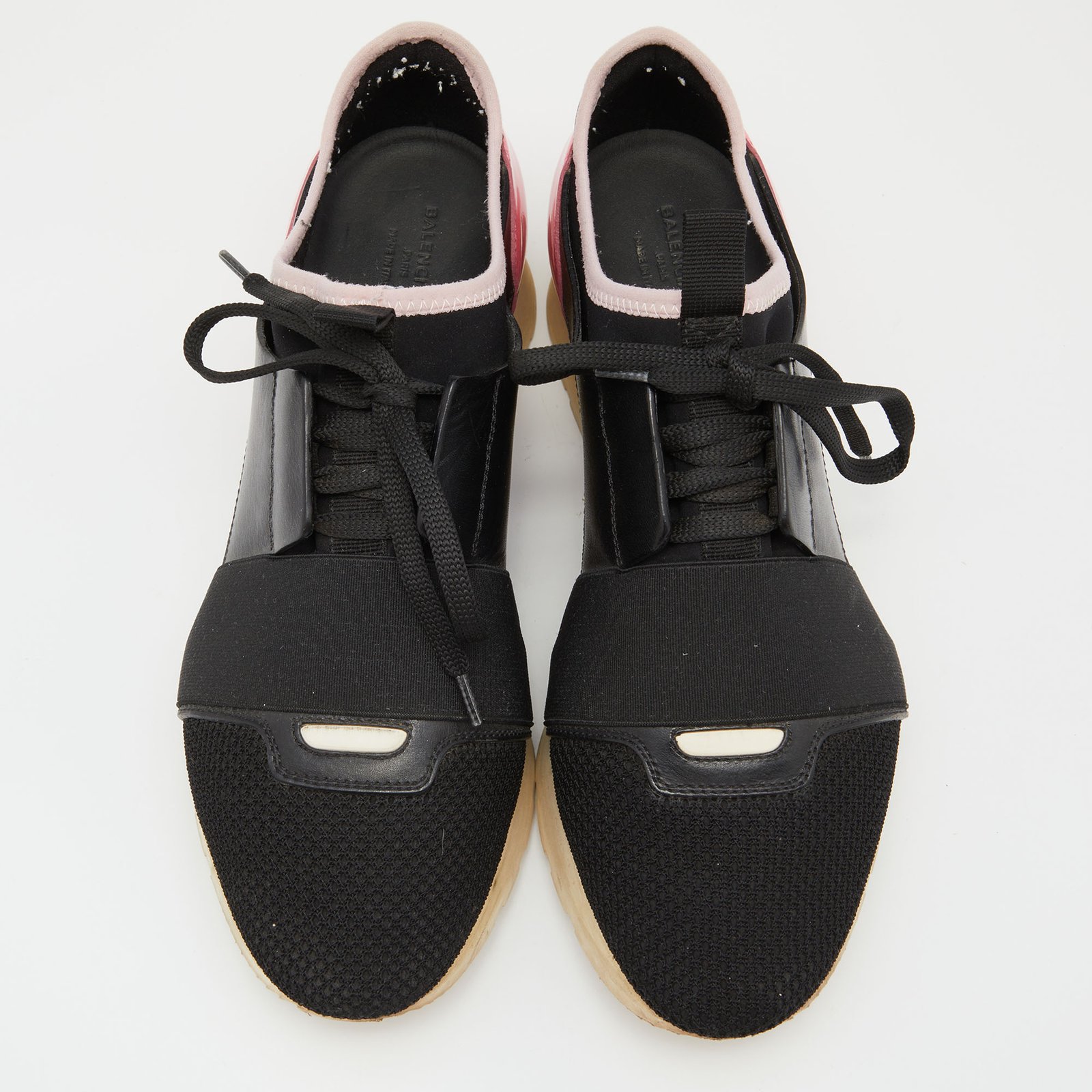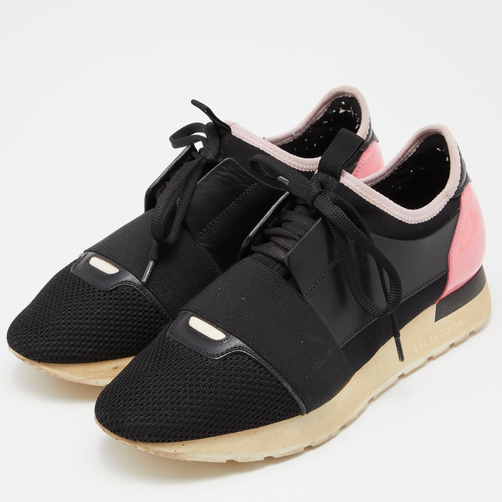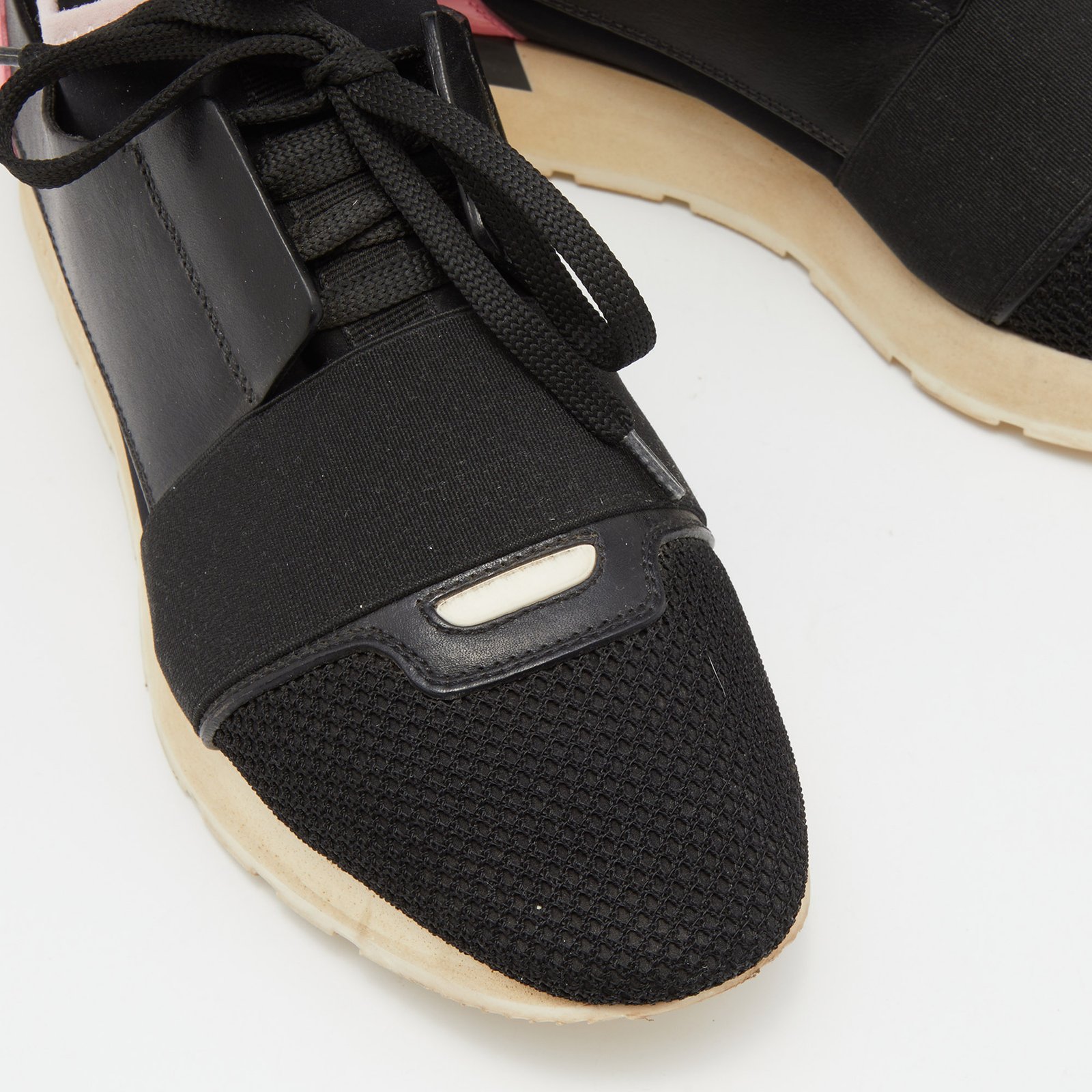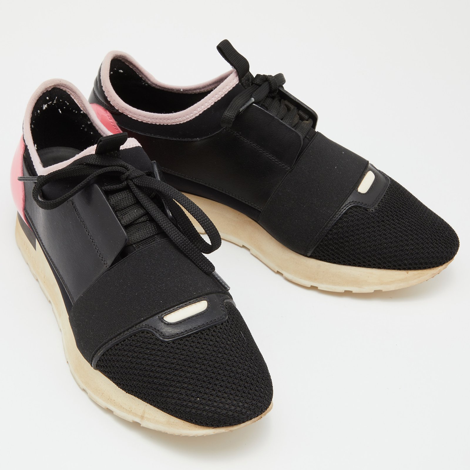 Balenciaga Black Leather and Mesh Race Runner Low Top Sneakers Size 39