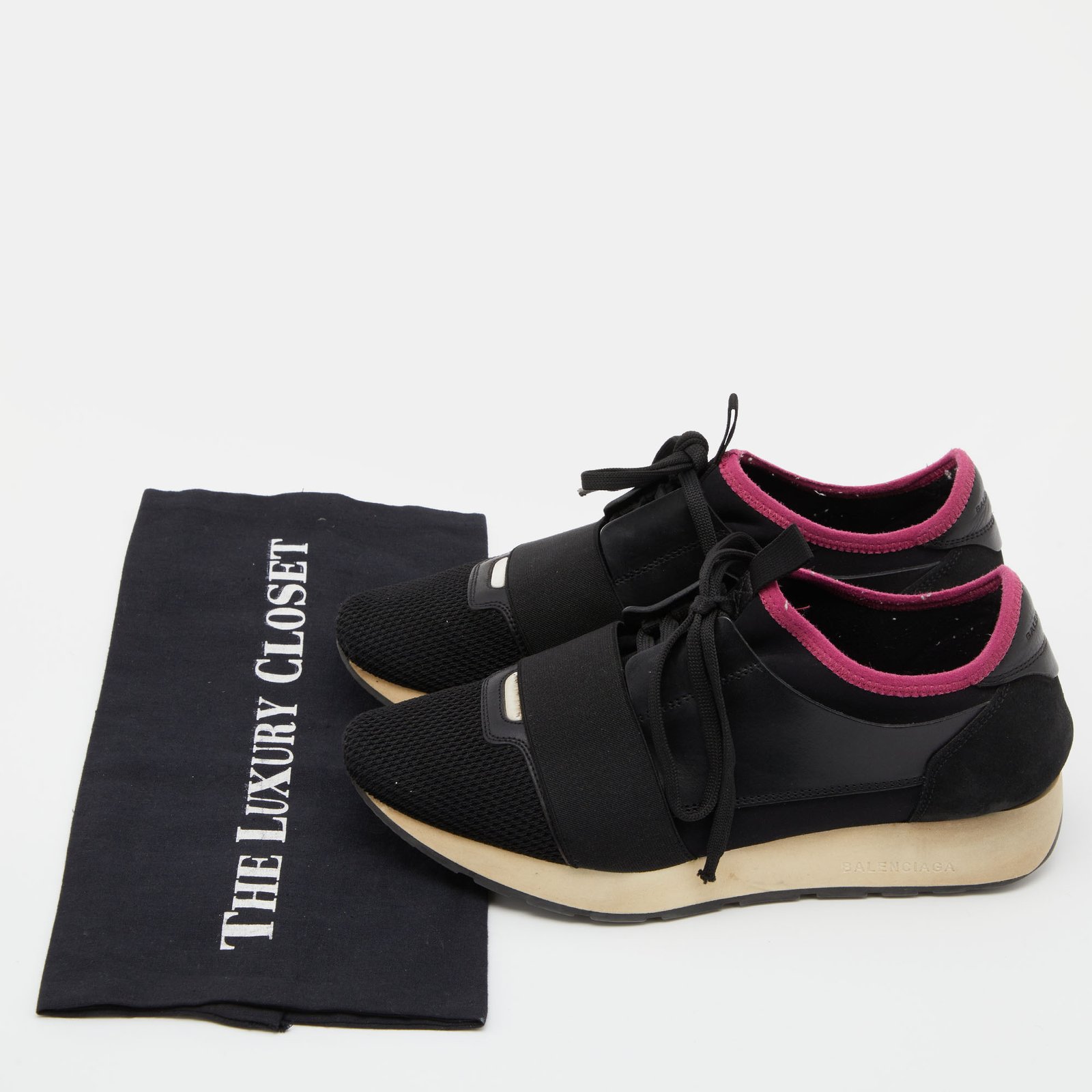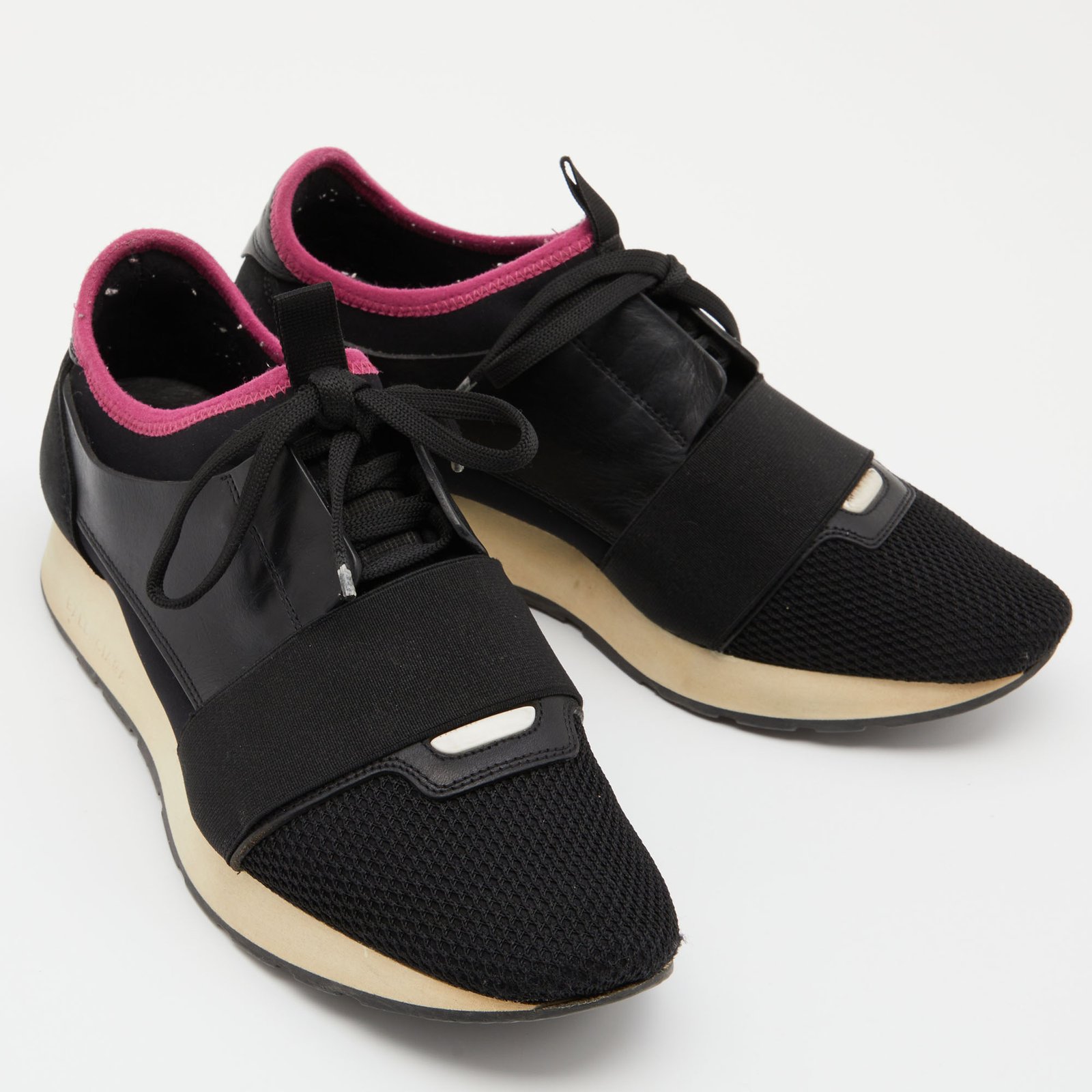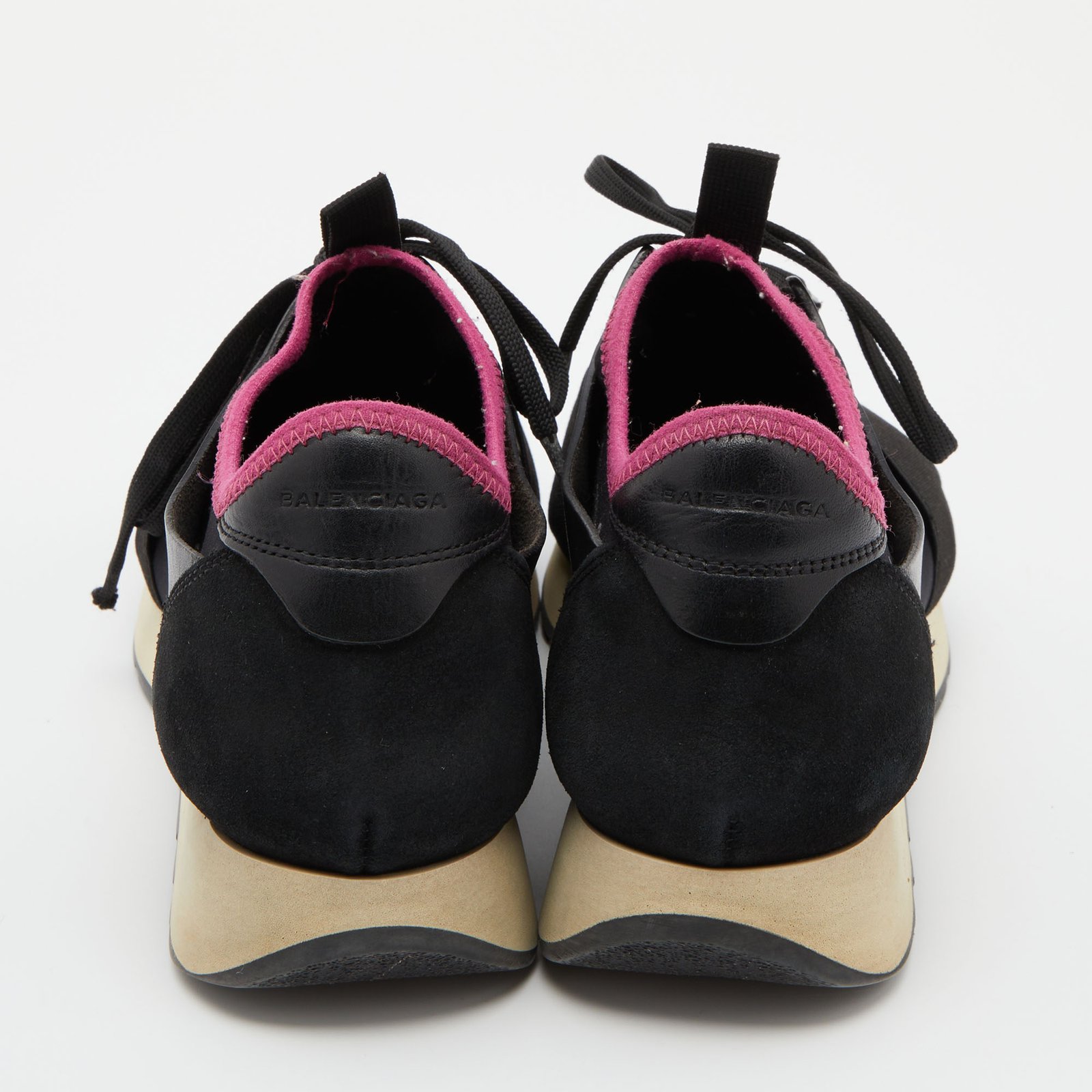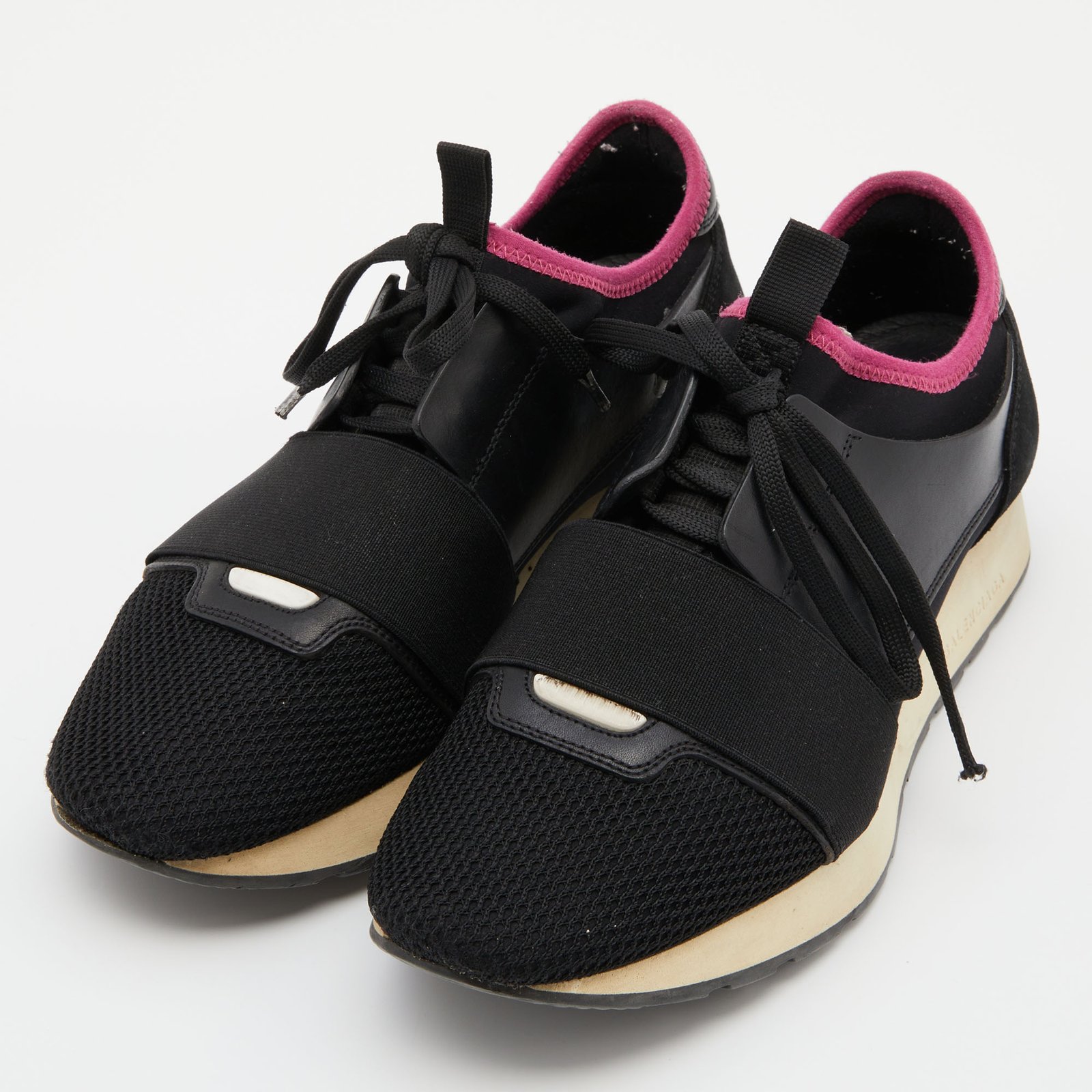 Balenciaga Black Leather and Mesh Race Runner Sneakers Size 39