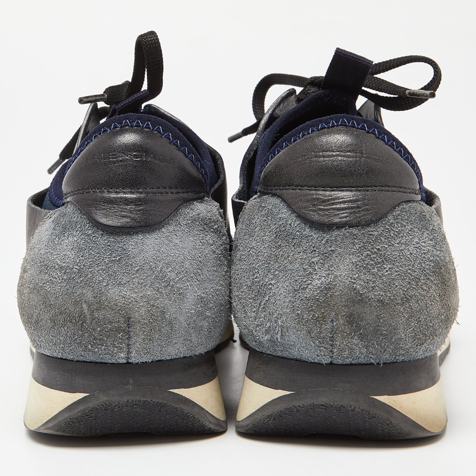 Balenciaga Black/Navy Blue Leather and Mesh Race Runner Sneakers Size 39 - Image 3