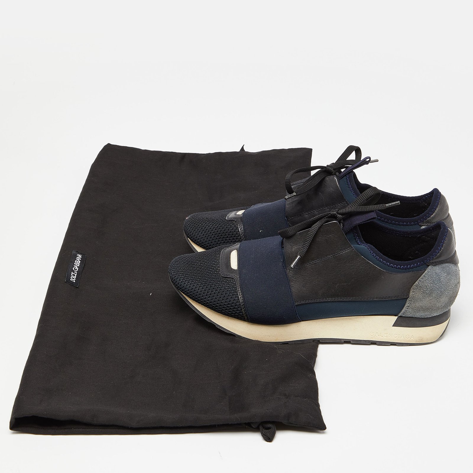 Balenciaga Black/Navy Blue Leather and Mesh Race Runner Sneakers Size 39 - Image 9