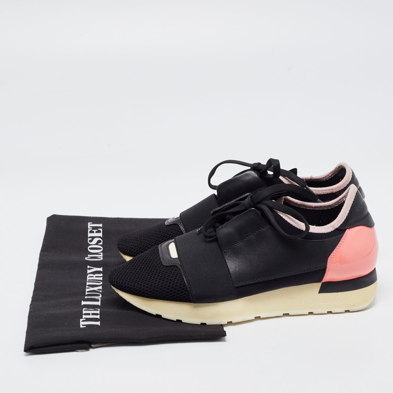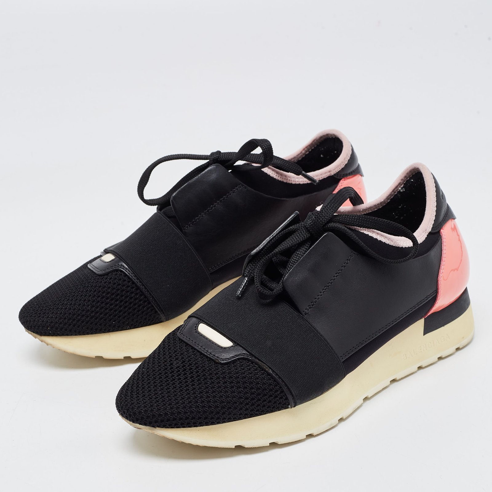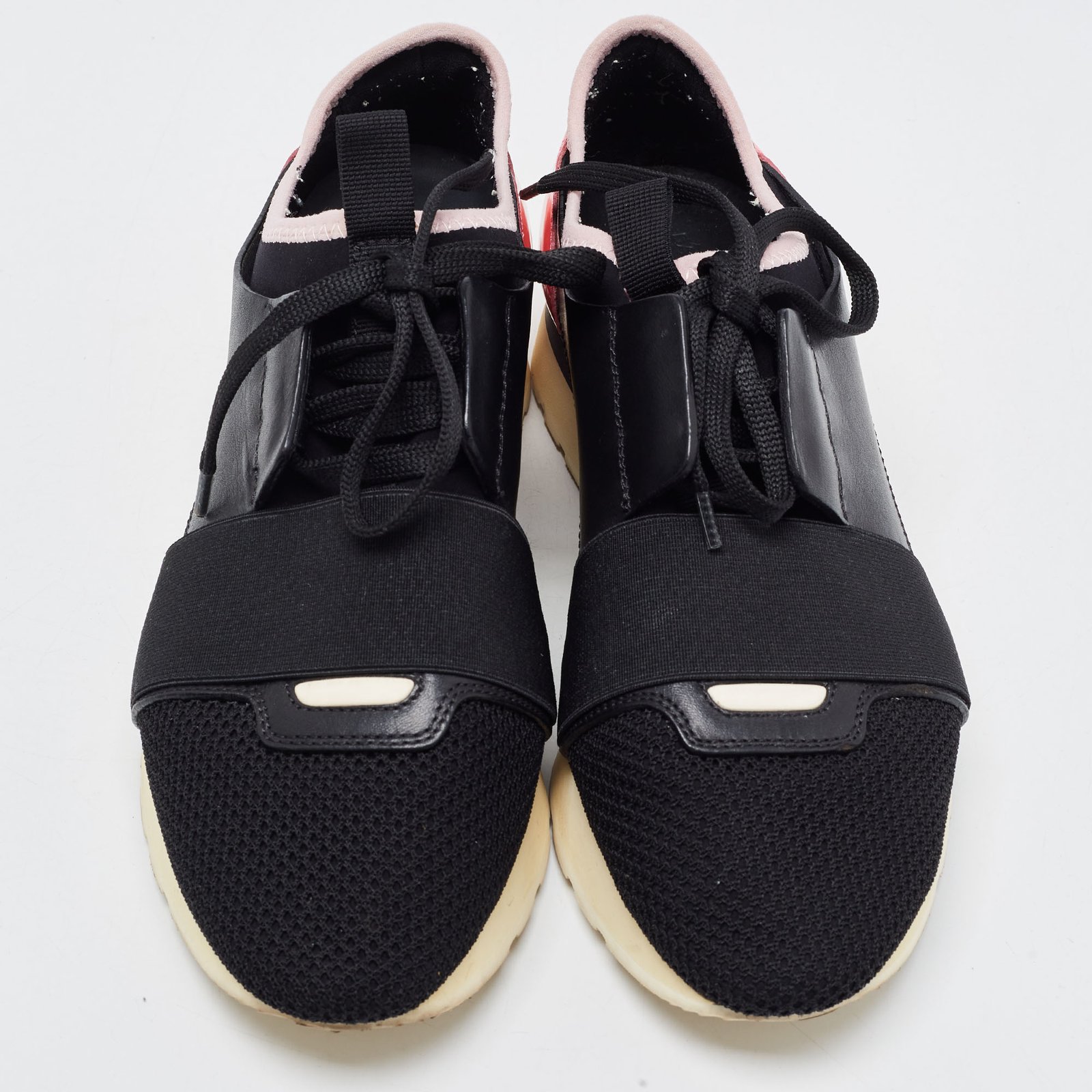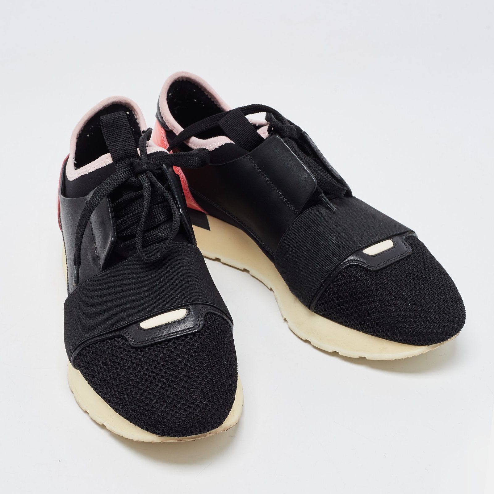 Balenciaga Black/Pink Leather and Mesh Race Runner Sneakers Size 37