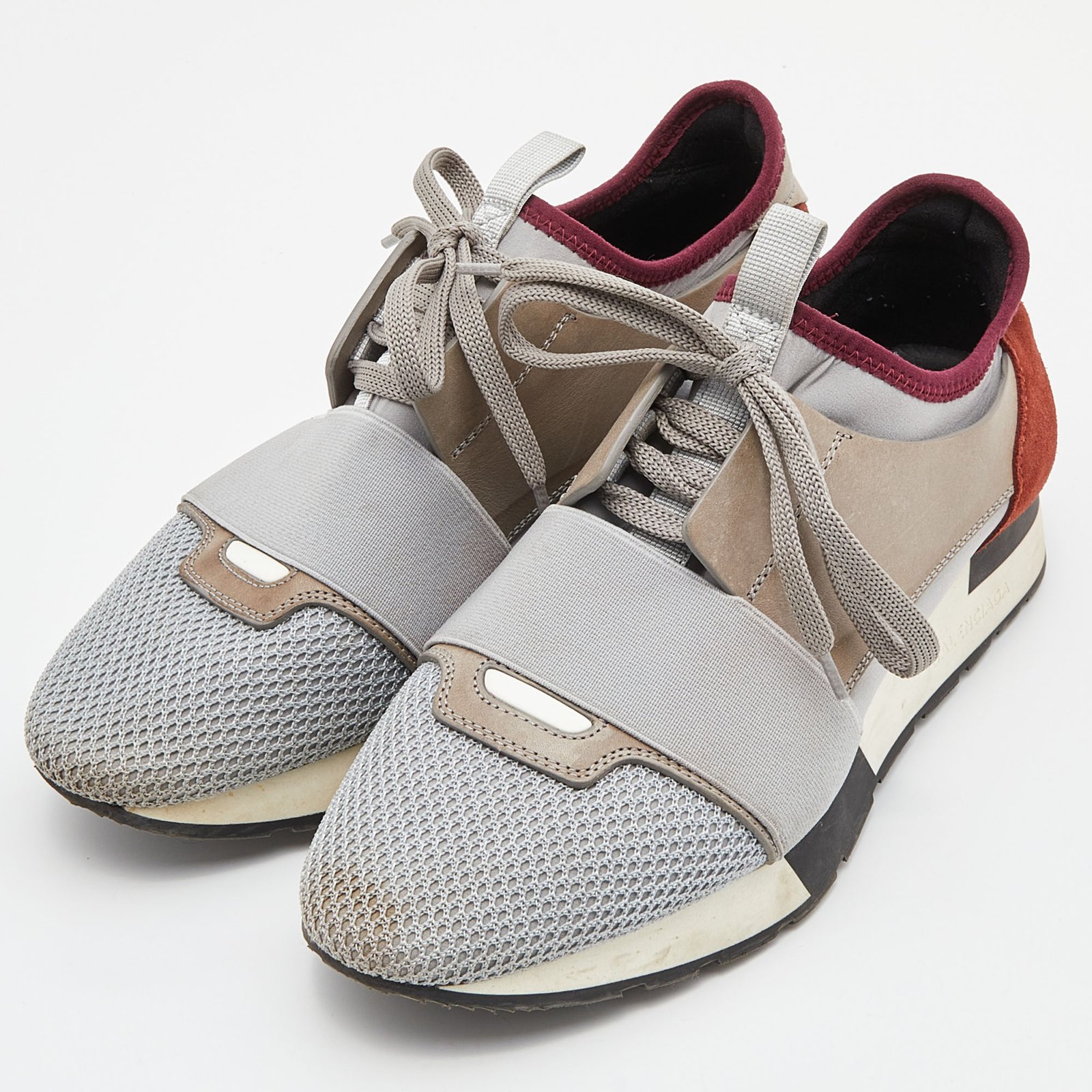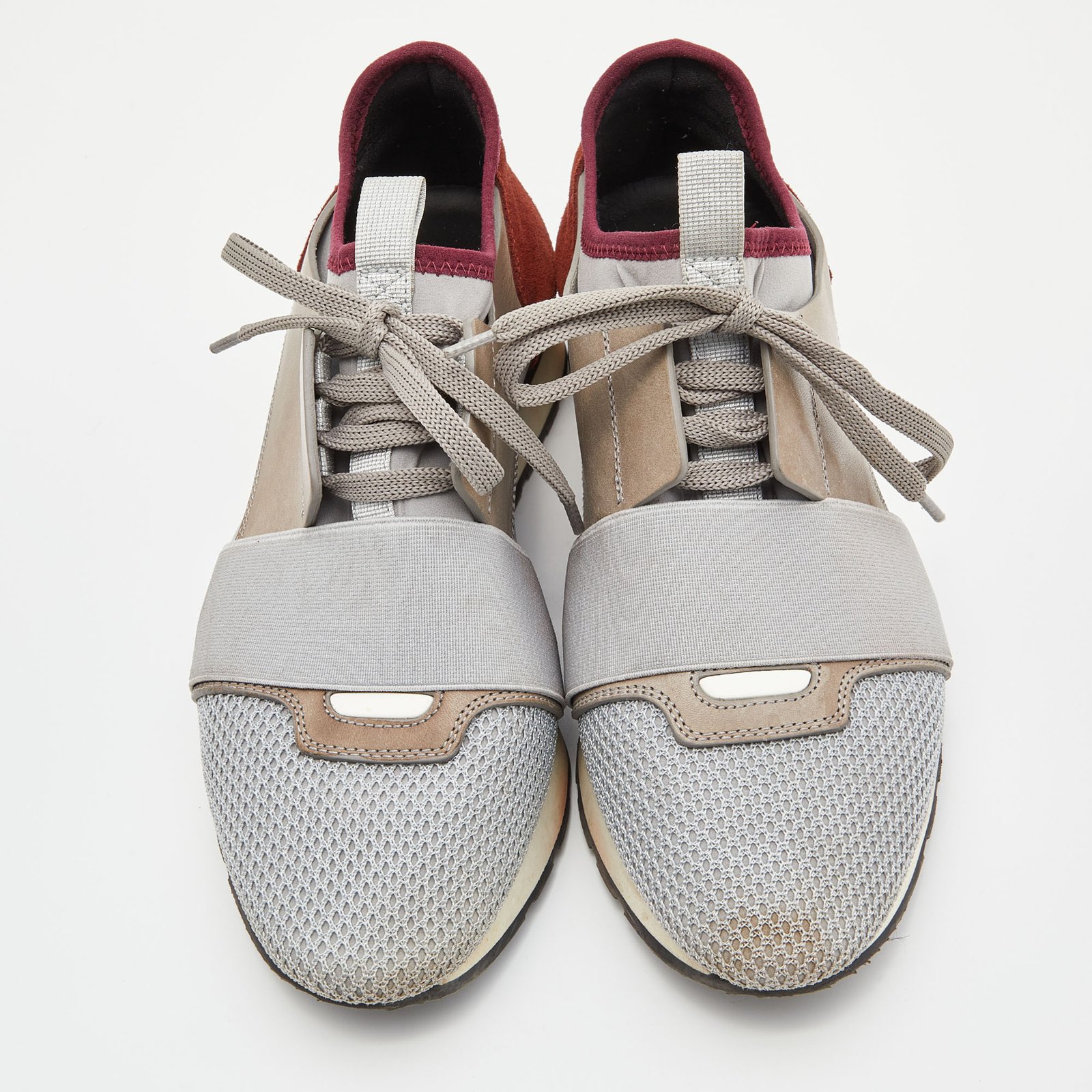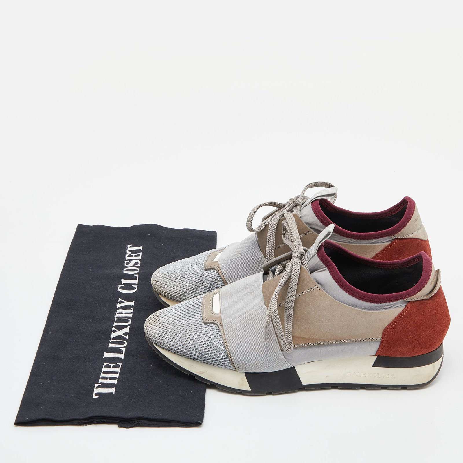 Balenciaga Tri Color Leather, Suede nd Mesh Race Runner Low Top Sneakers Size 38