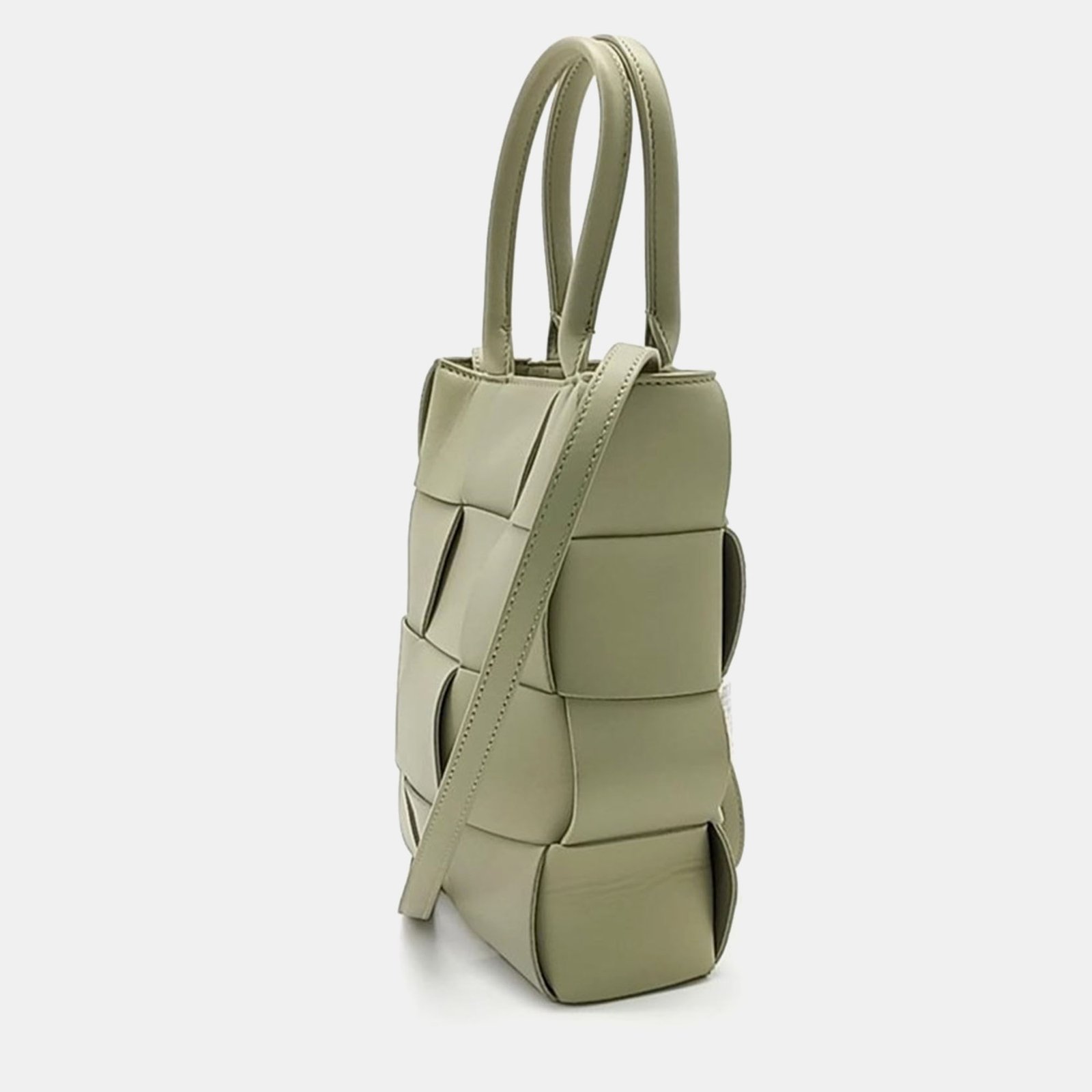 Bottega Veneta Green Leather Mini Cassette Tote Bag