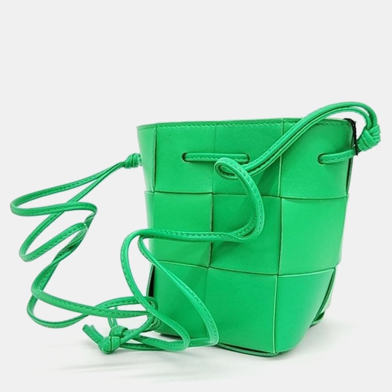 Bottega Veneta Green Woven Leather Cassette Bucket Bag