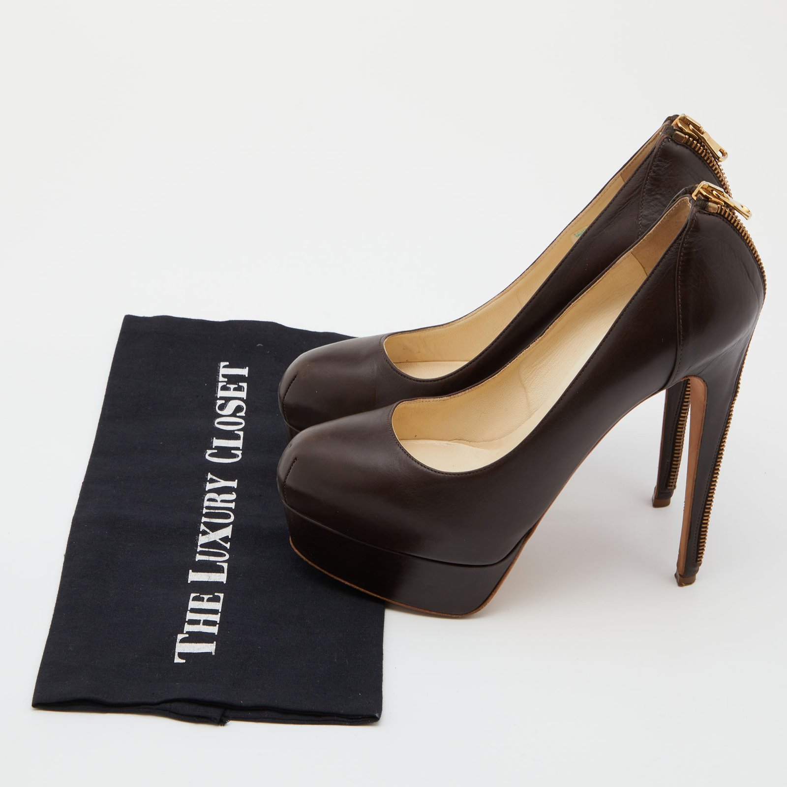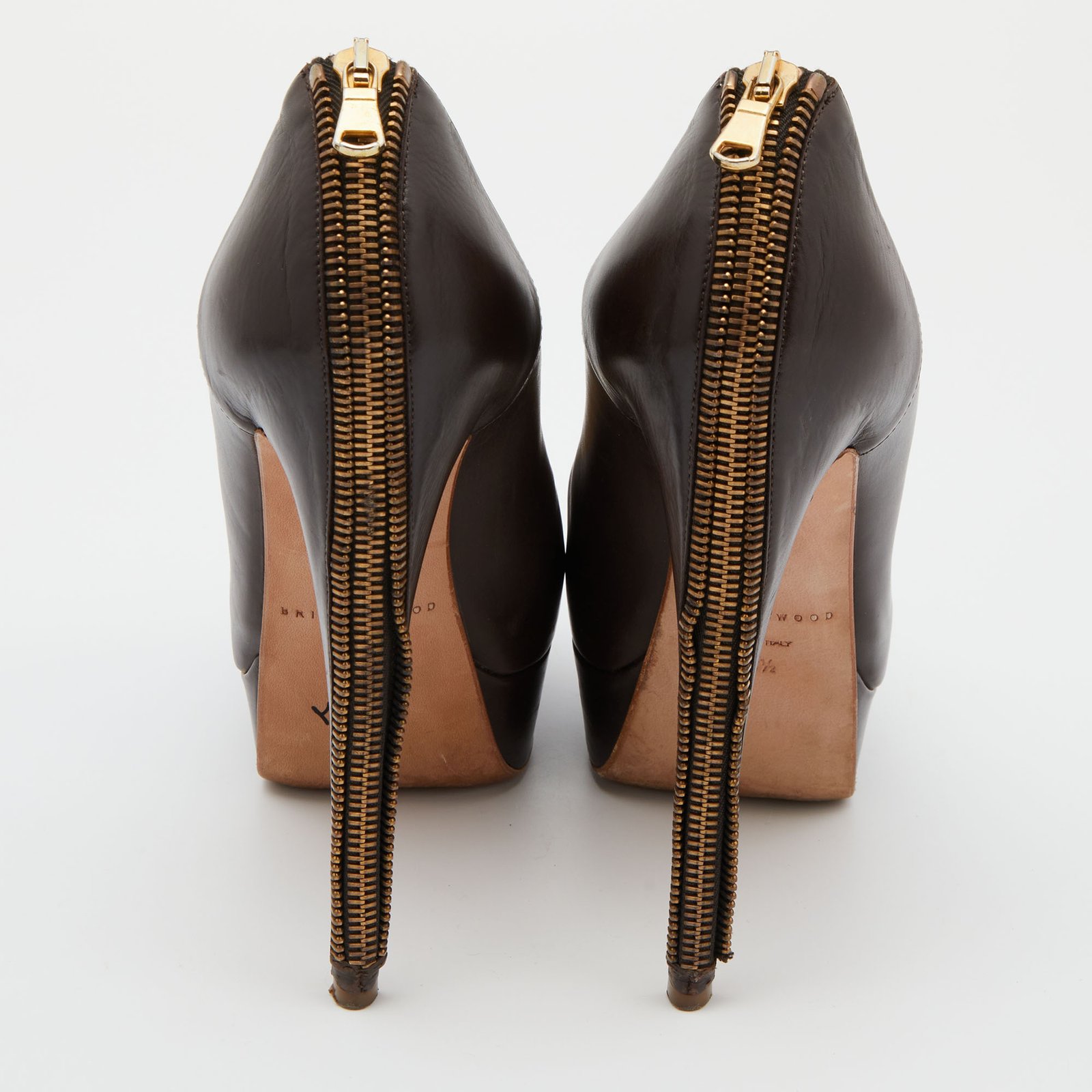 Brian Atwood Brown Leather Chain Heel Platform Pumps Size 38.5