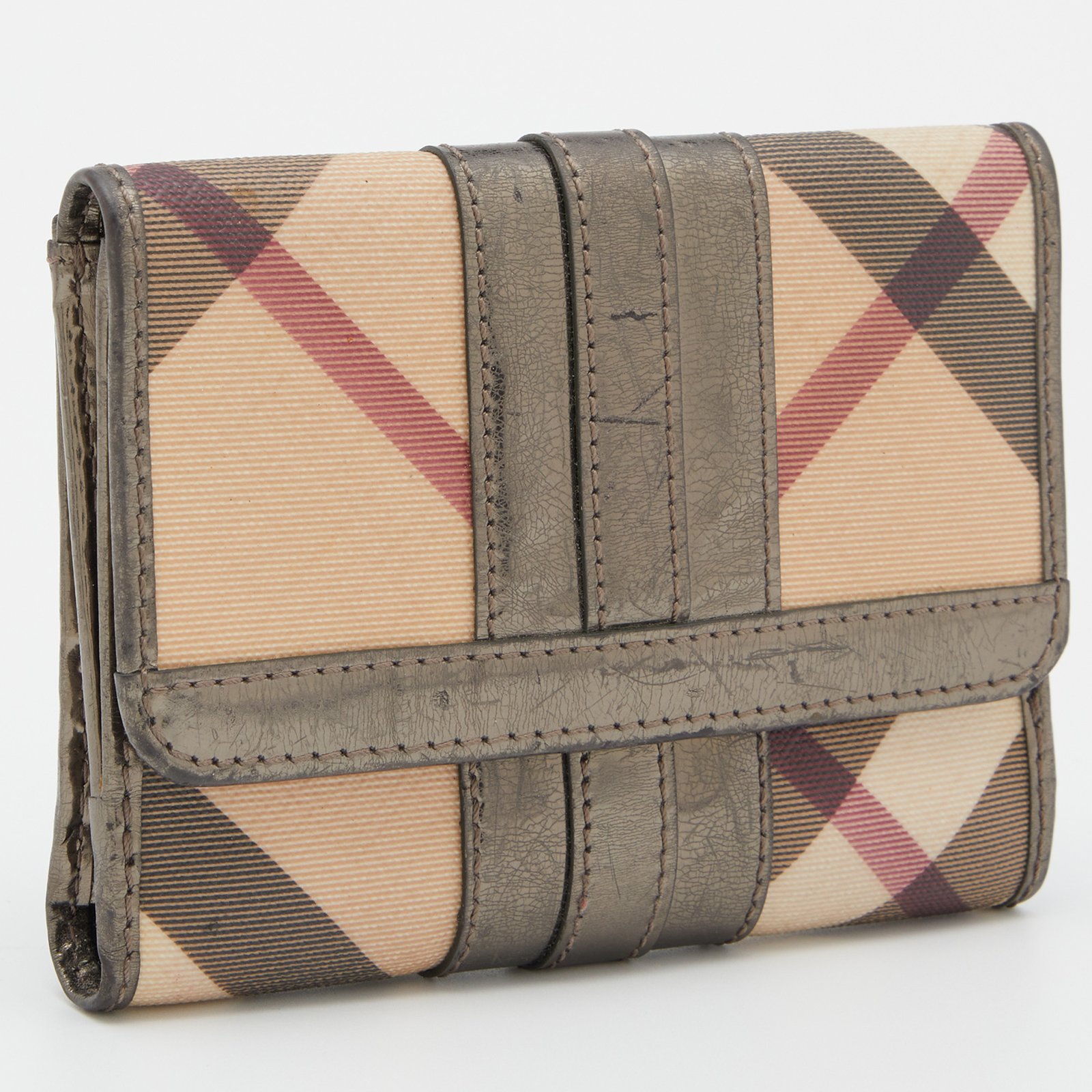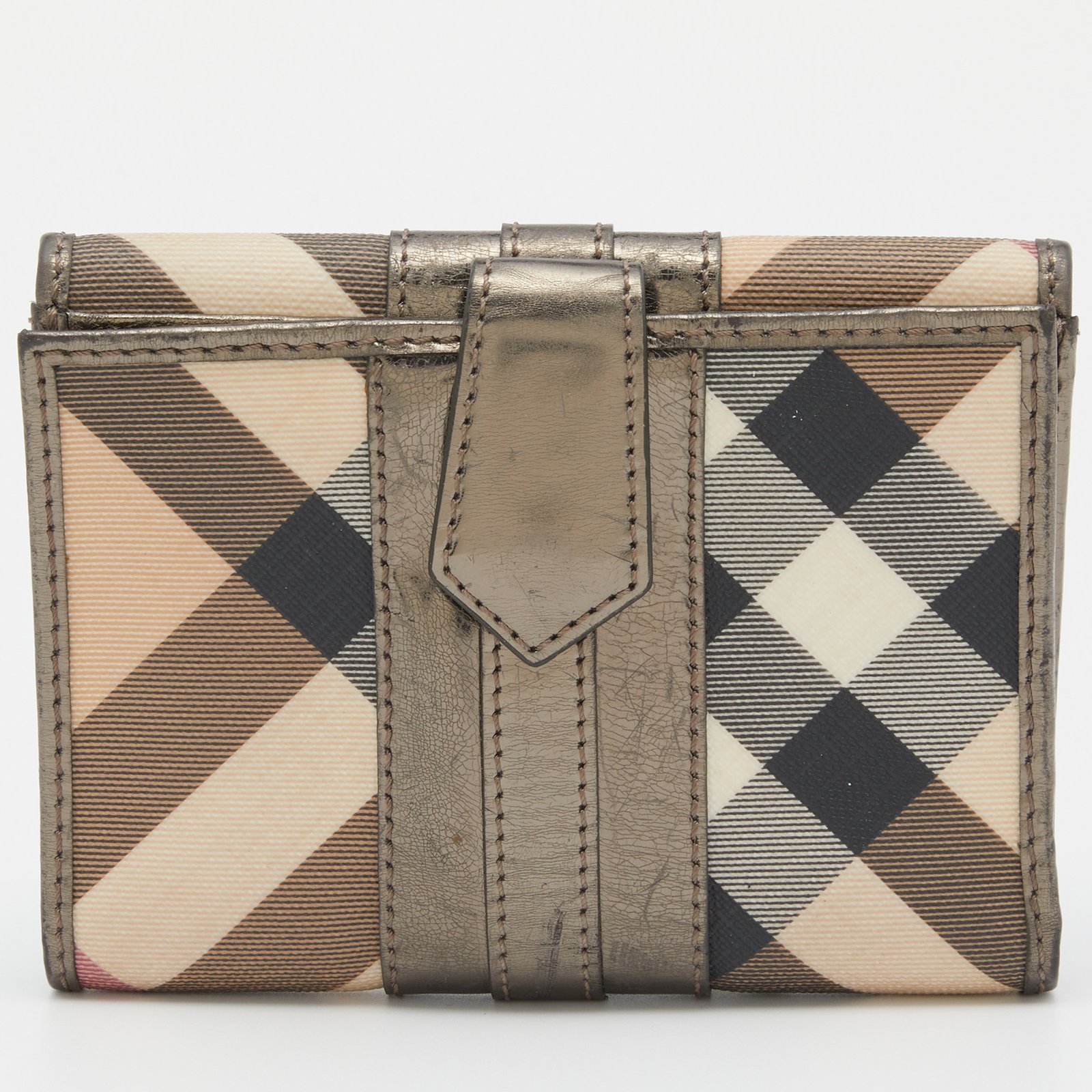 Burberry Metallic/Beige Nova Check PVC and Patent Leather French Wallet