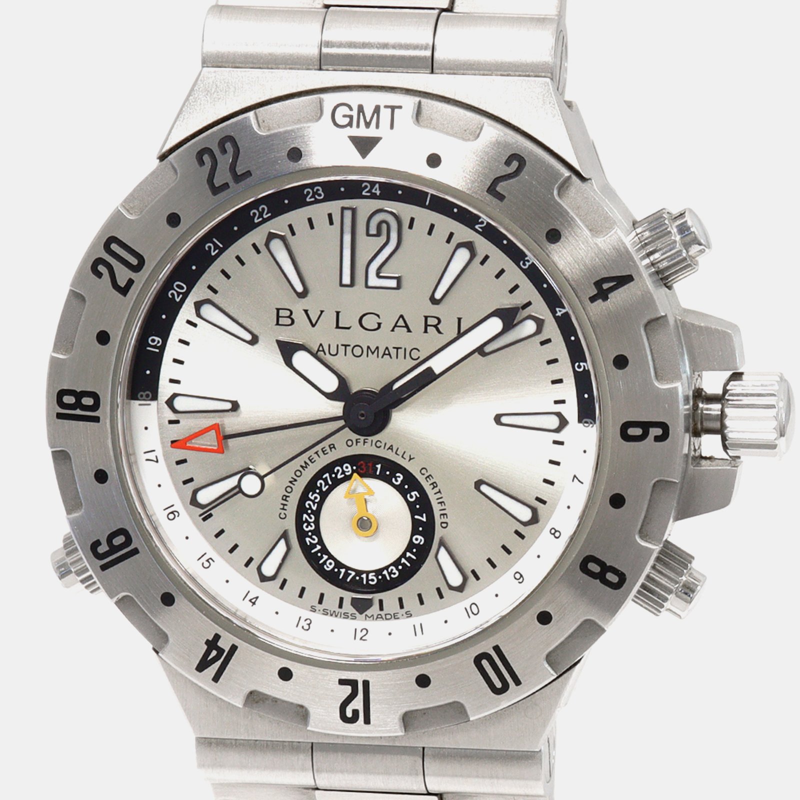 Bvlgari Silver Stainless Steel Diagono GMT40S Automatic Men’s Wristwatch 40 mm