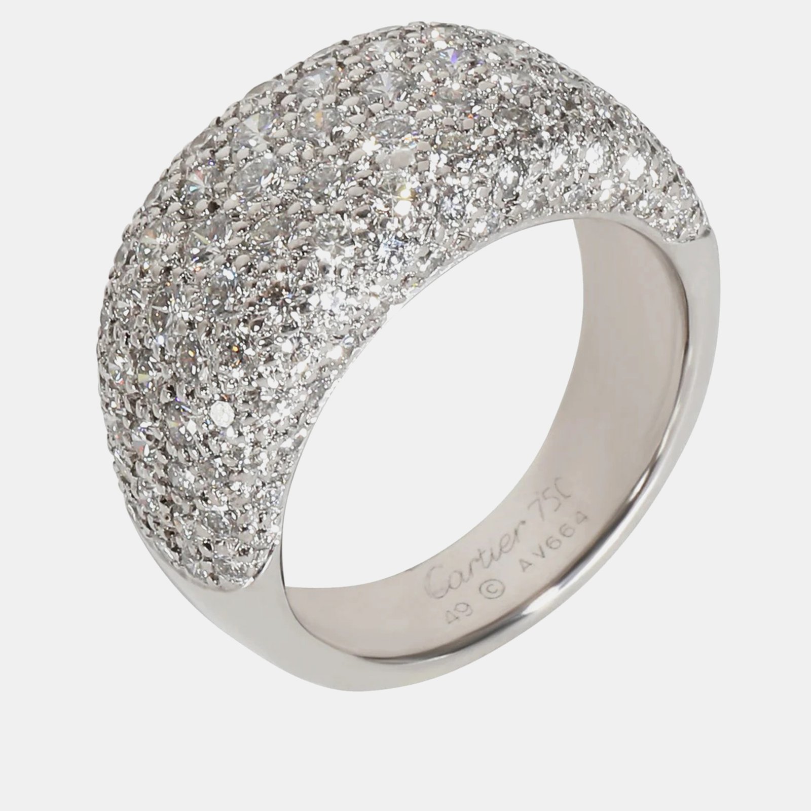 Cartier 18k White Gold Vintage Fashion Ring 3.5 CTW EU 52