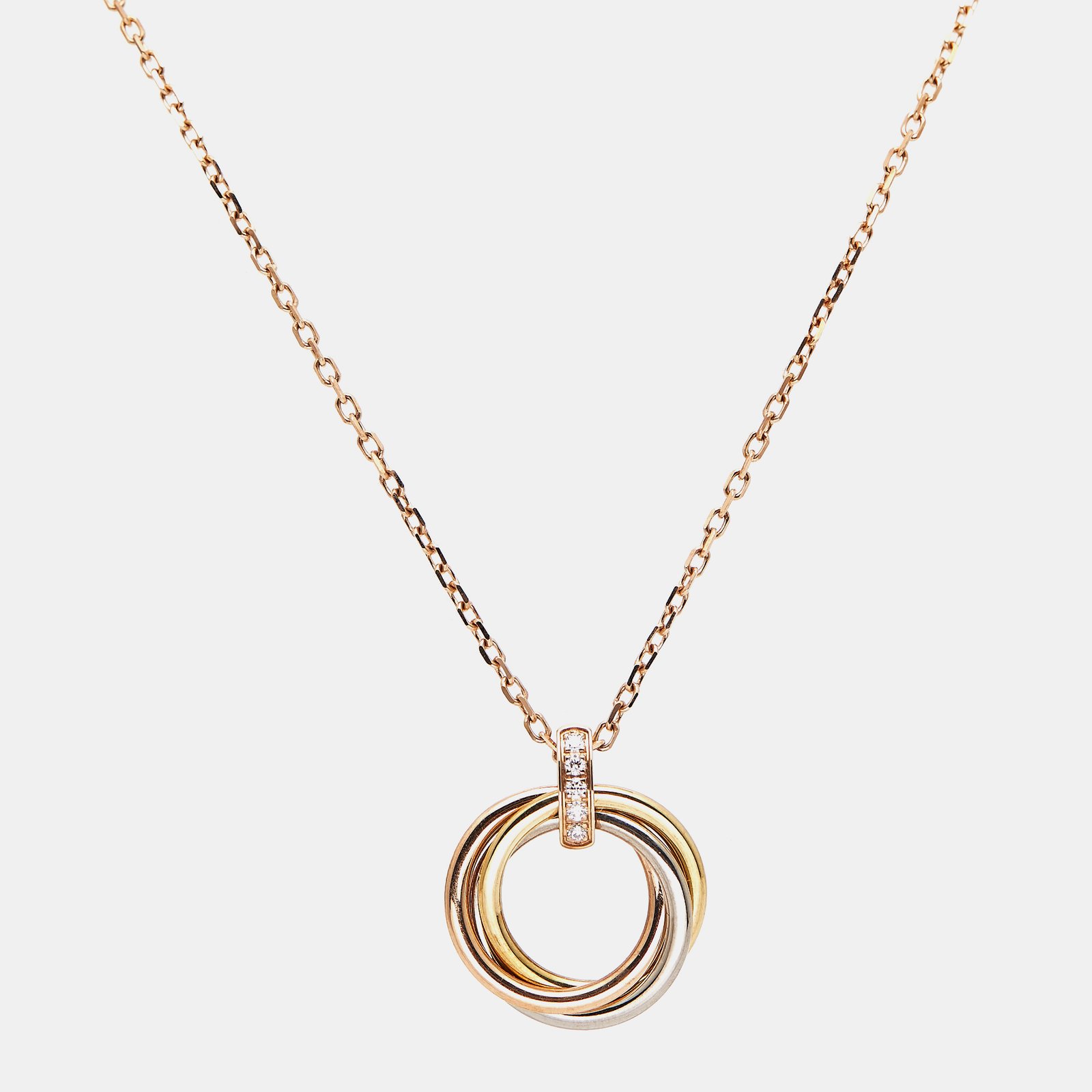 Cartier Trinity Diamond 18K Three Tone Gold Pendant Necklace