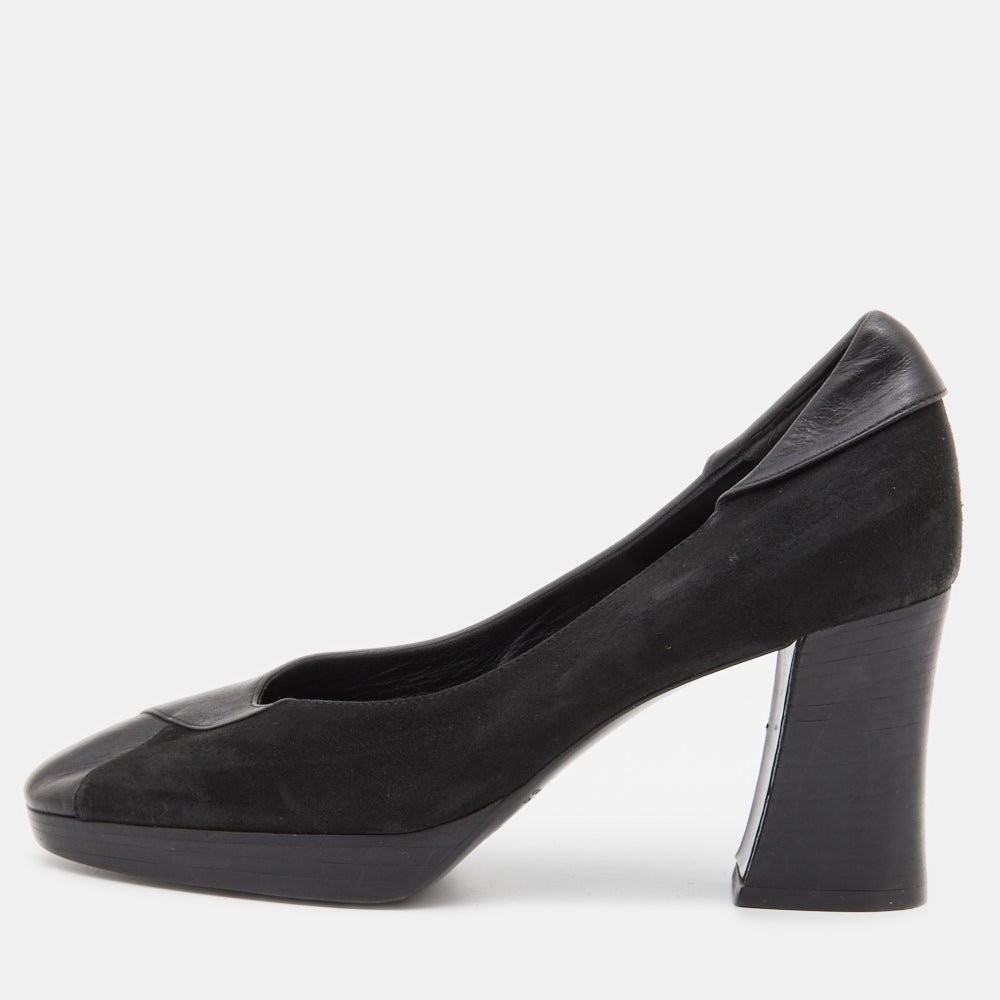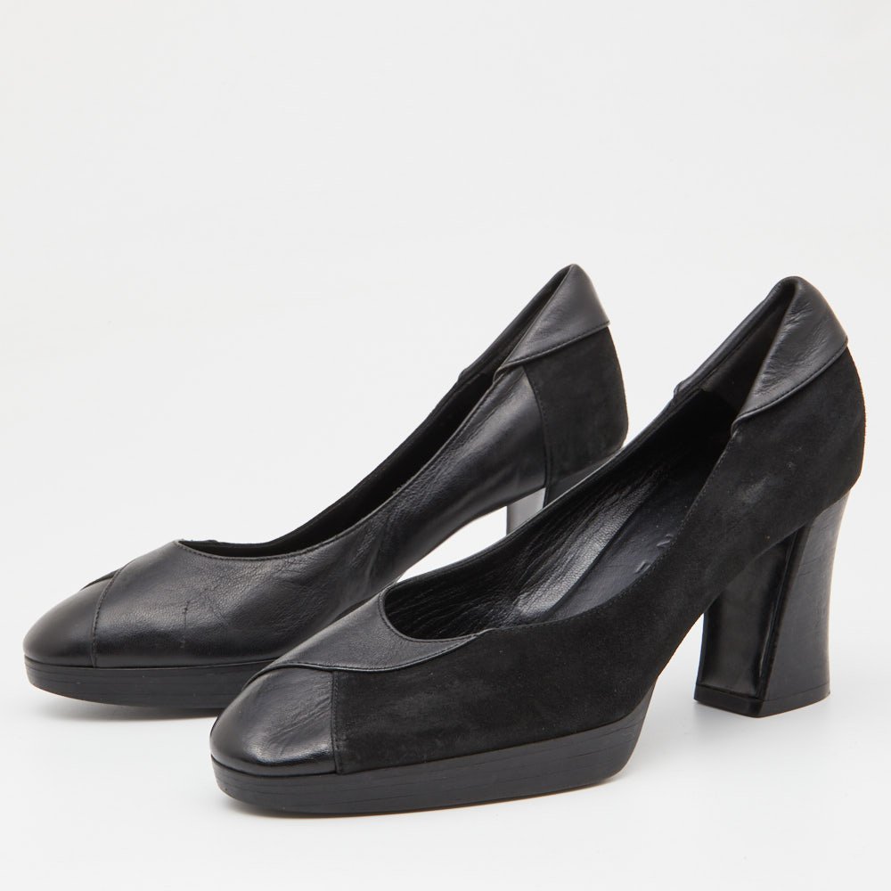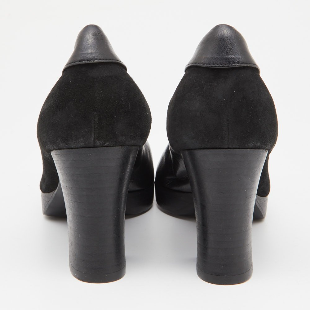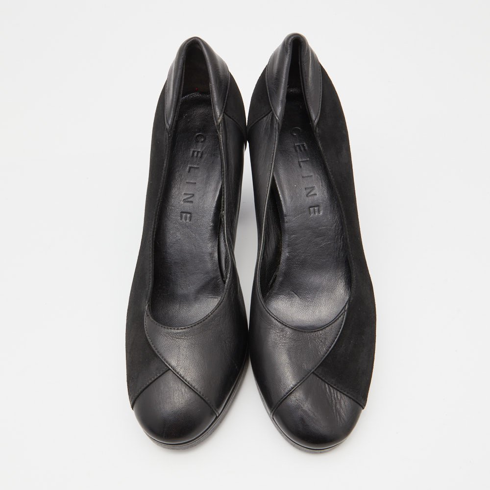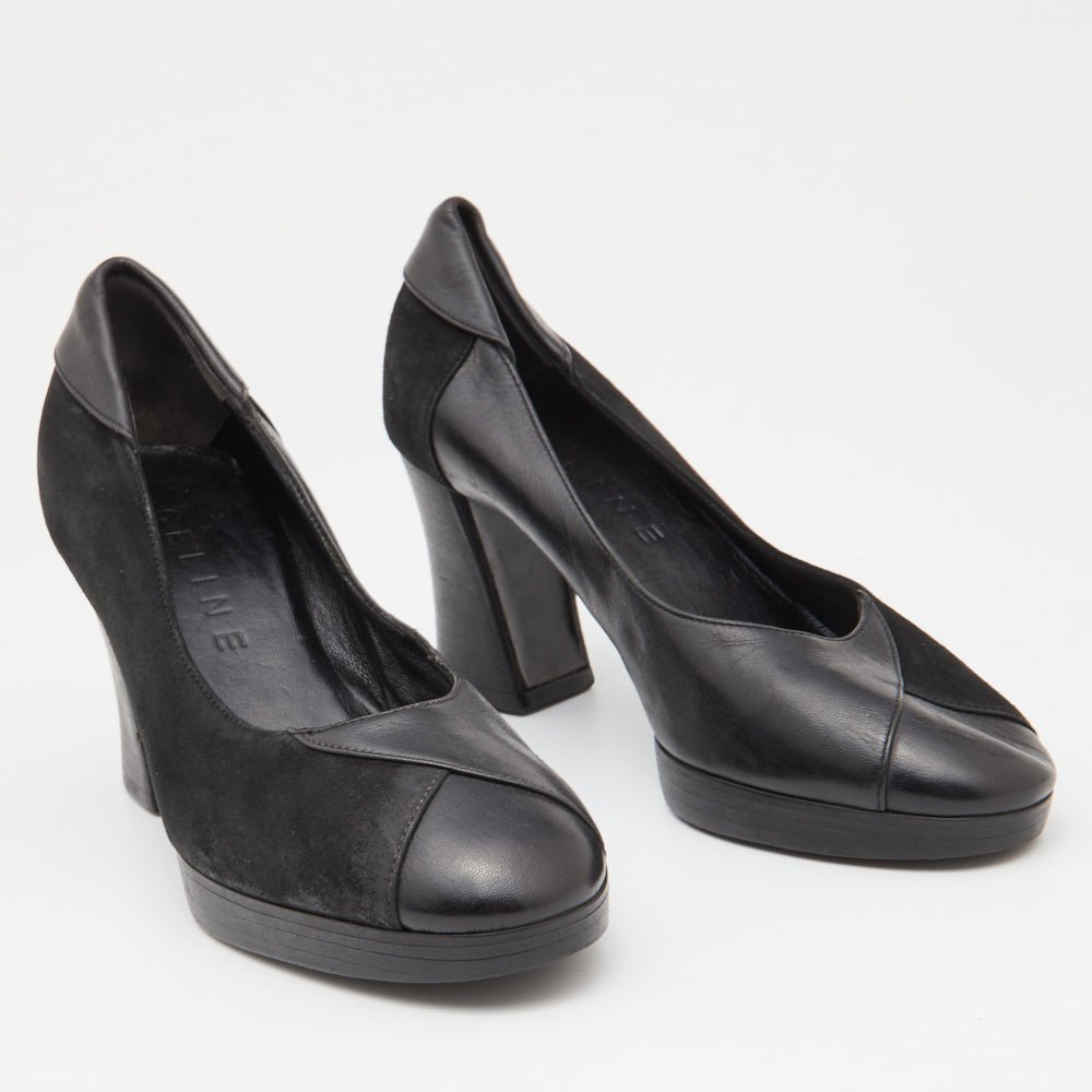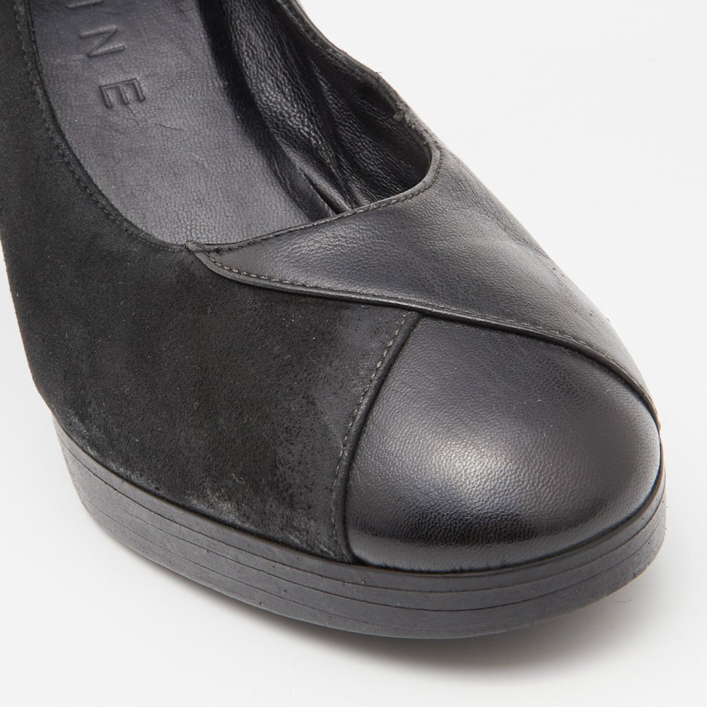 Celine Black Leather and Suede Block Heel Pumps Size 35.5