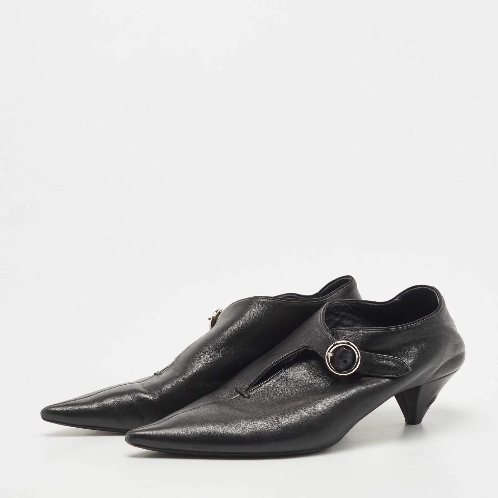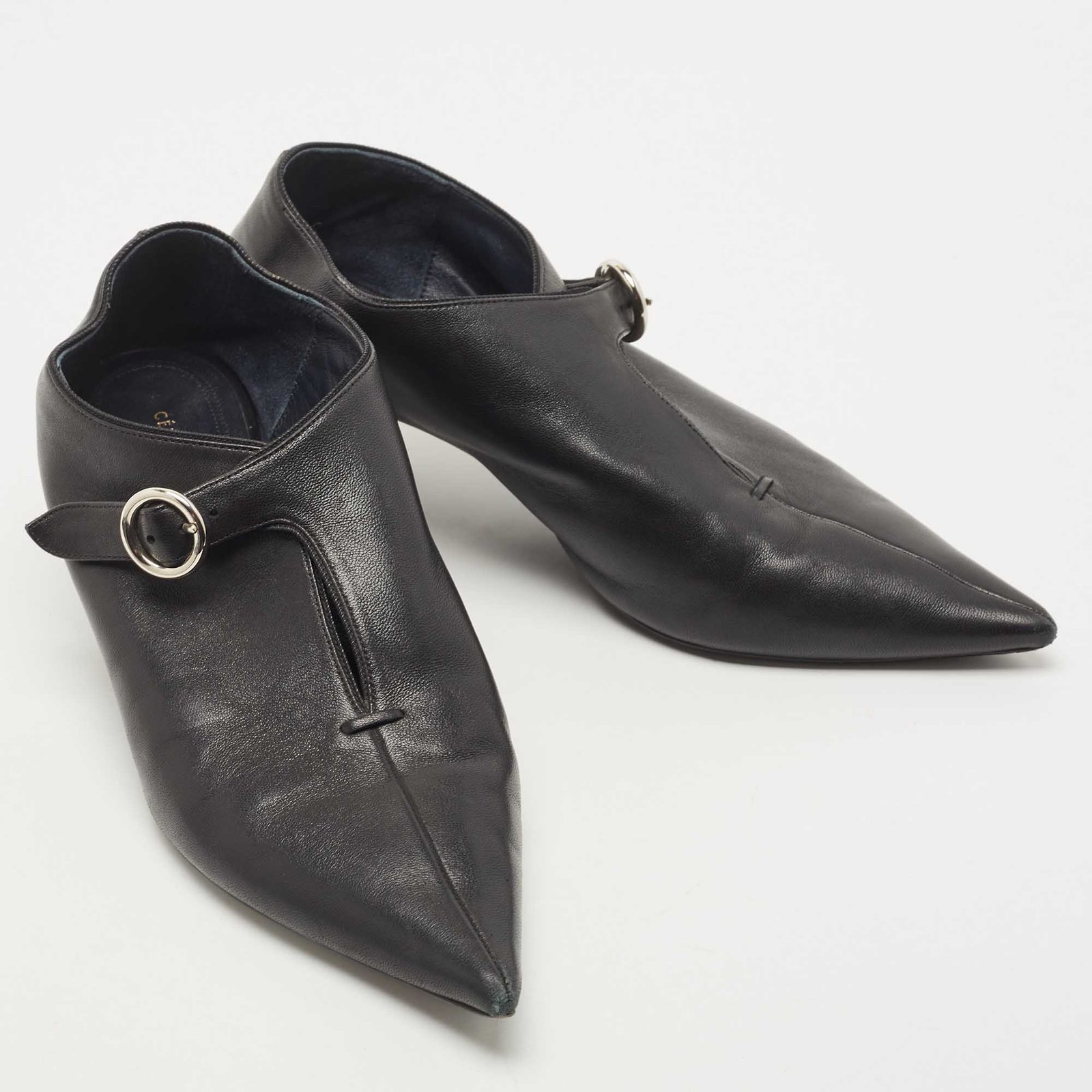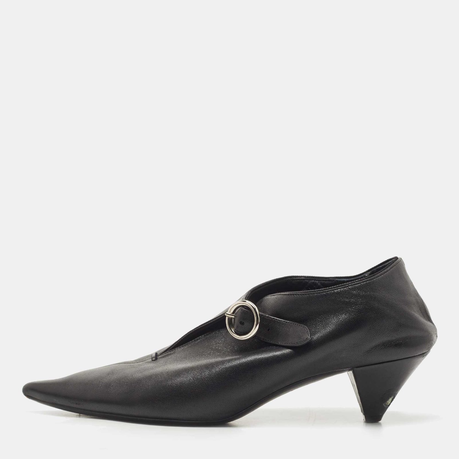 Celine Black Leather Buckle Detail Pointed Toe Booties Size 36
