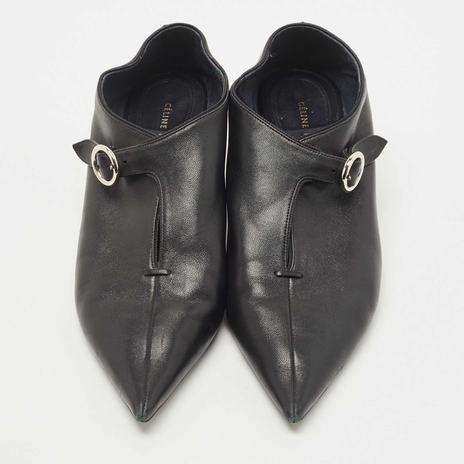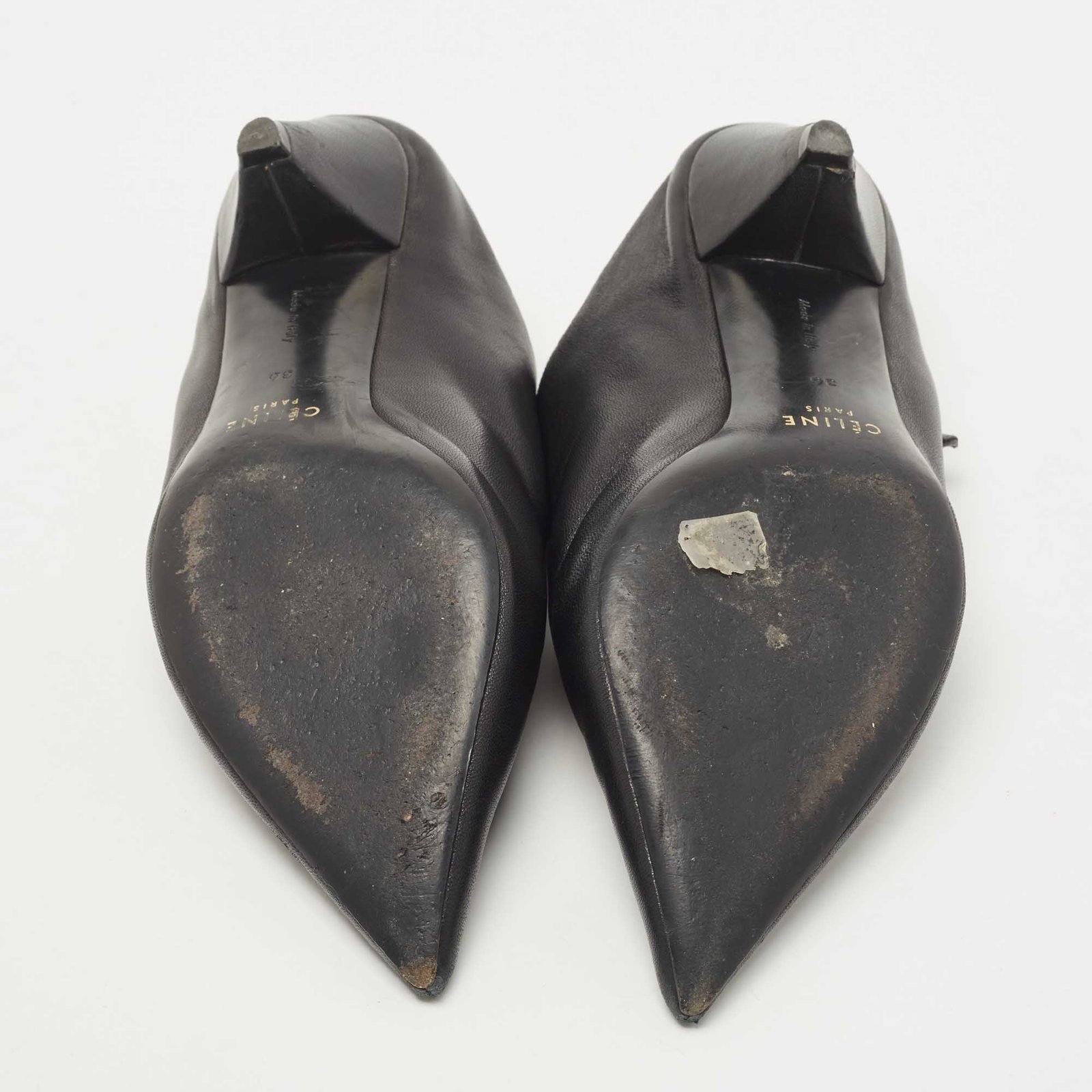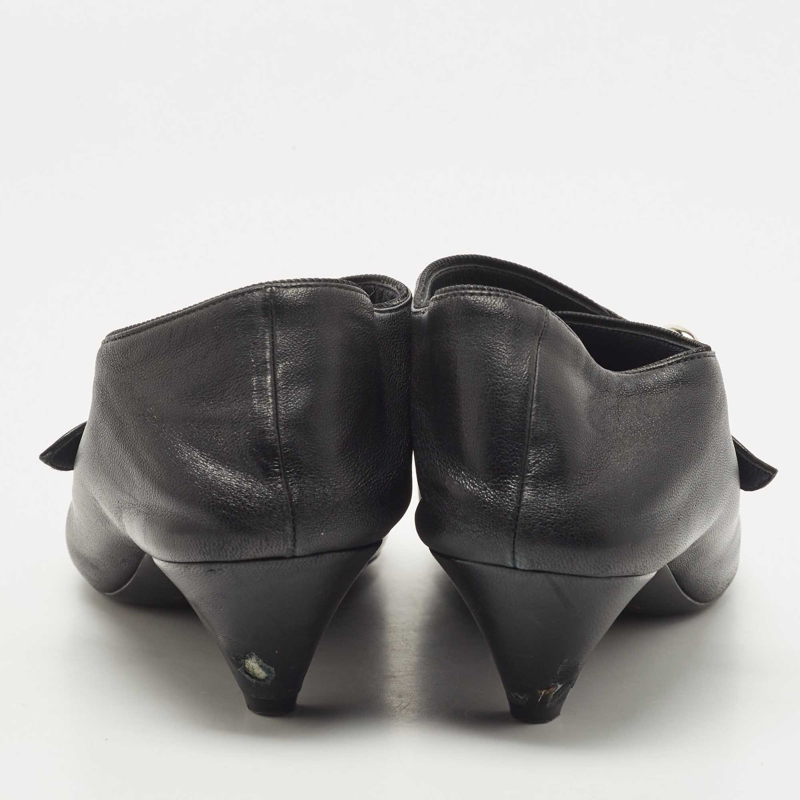 Celine Black Leather Buckle Detail Pointed Toe Booties Size 36