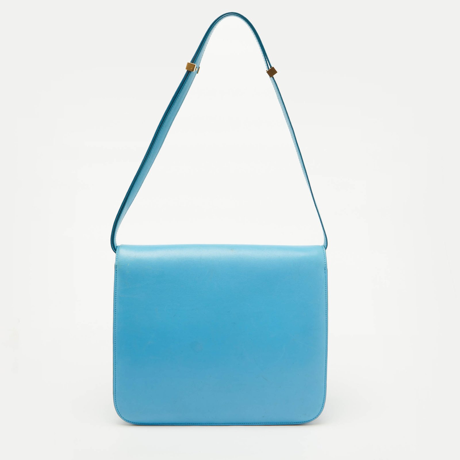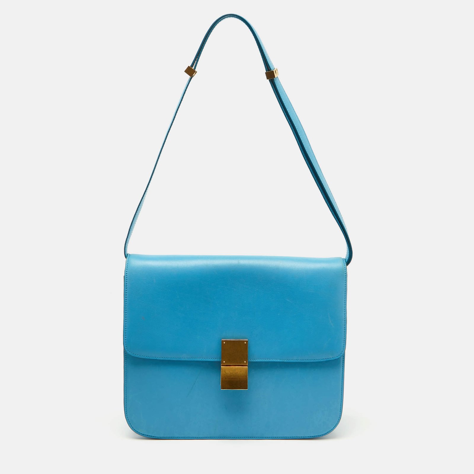 Celine Blue Leather Large Classic Box Shoulder Bag
