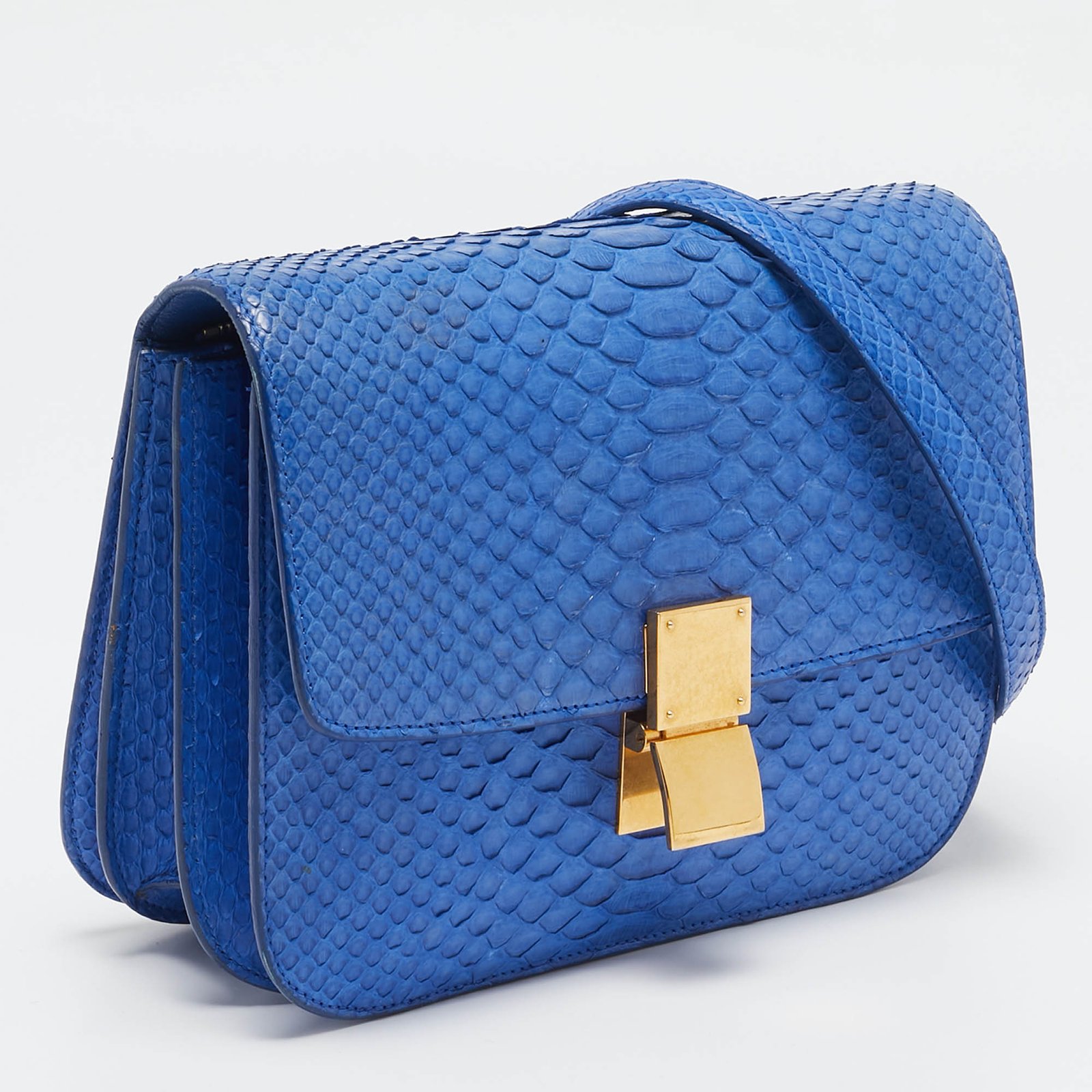 Celine Blue Python Medium Classic Box Shoulder Bag
