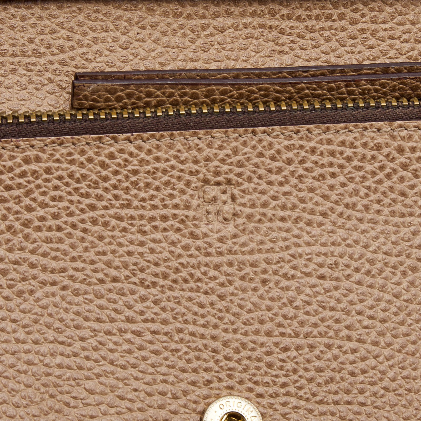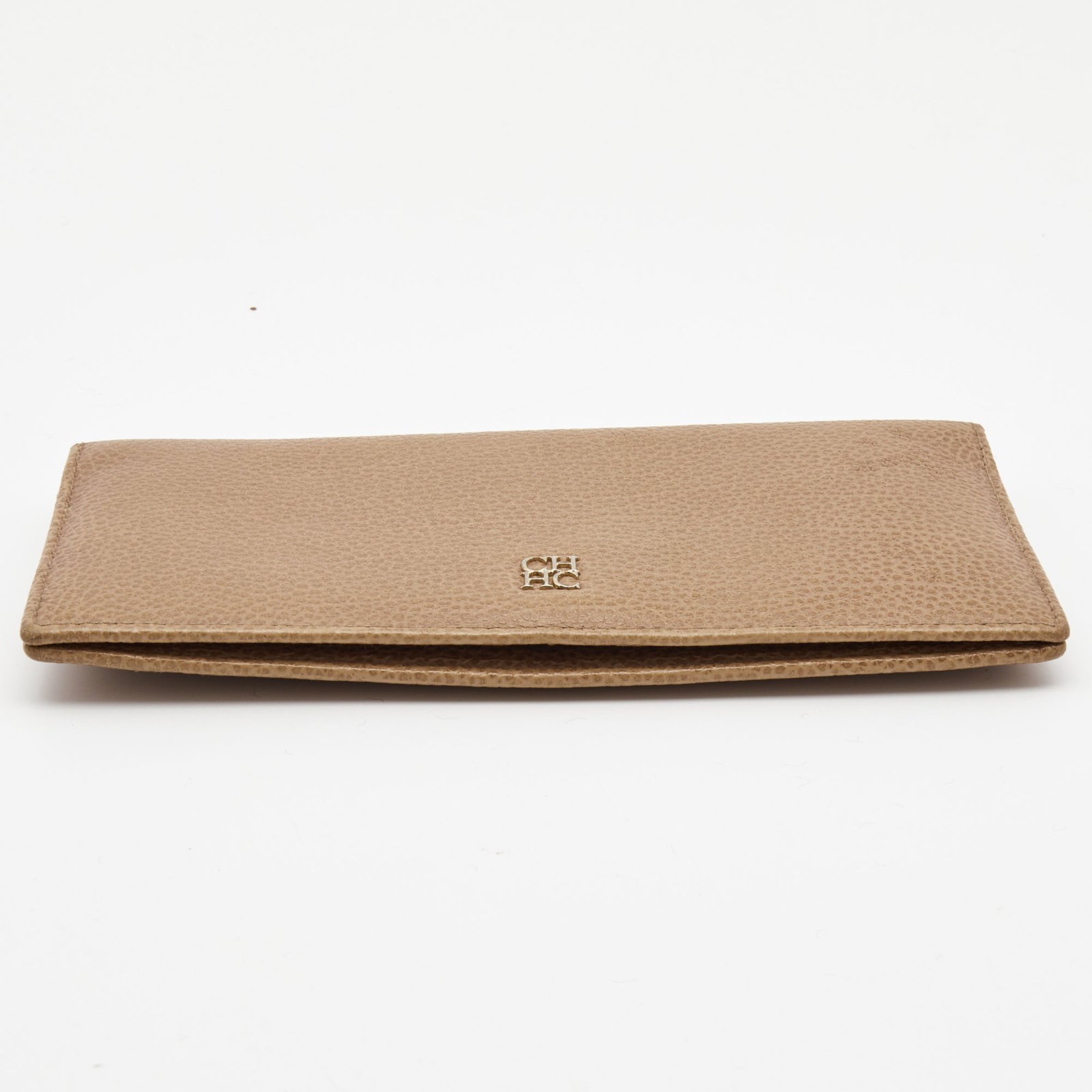 CH Carolina Herrera Beige Leather Flap Bifold Continental Wallet