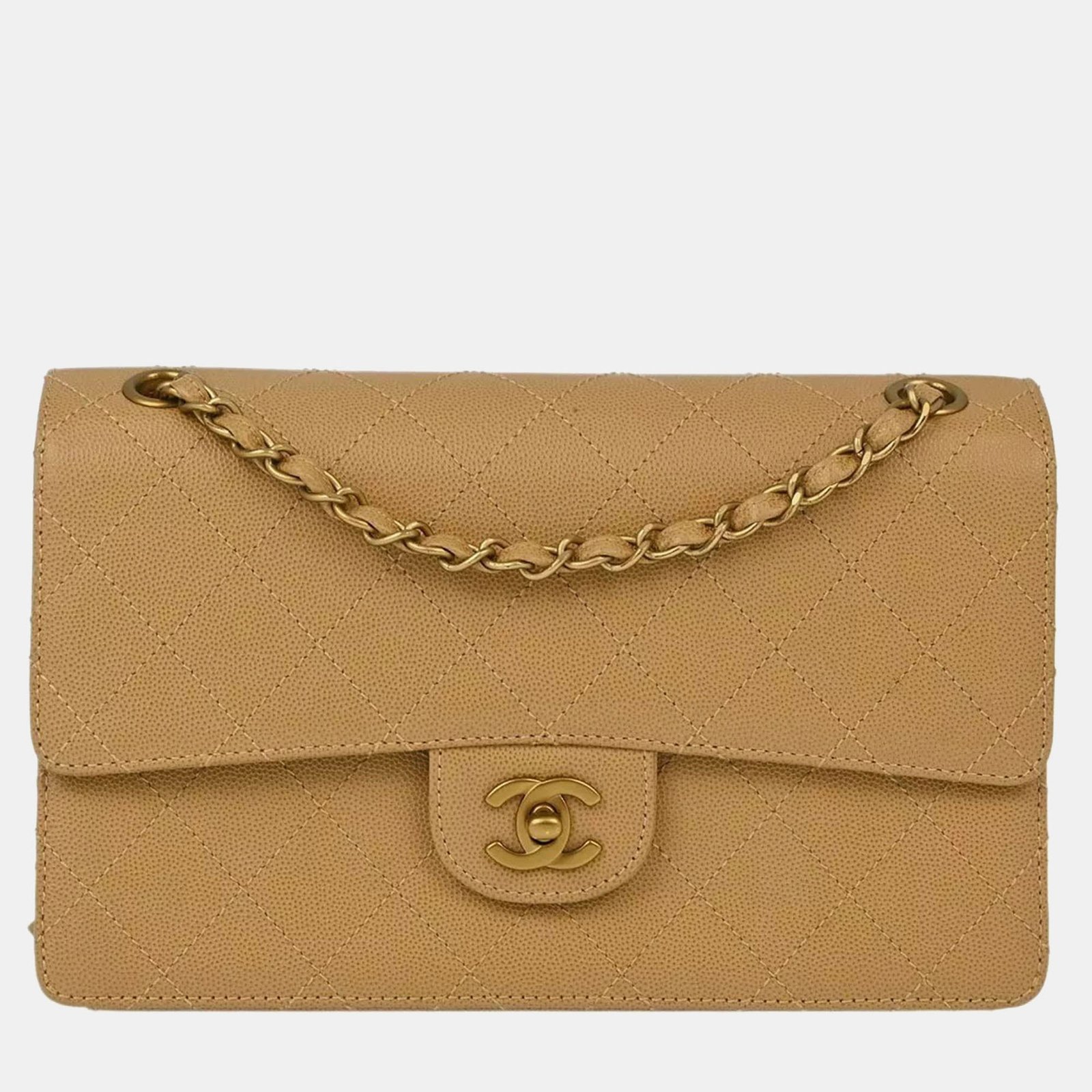 Chanel Beige Calfskin Medium Classic Single Flap Shoulder Bag