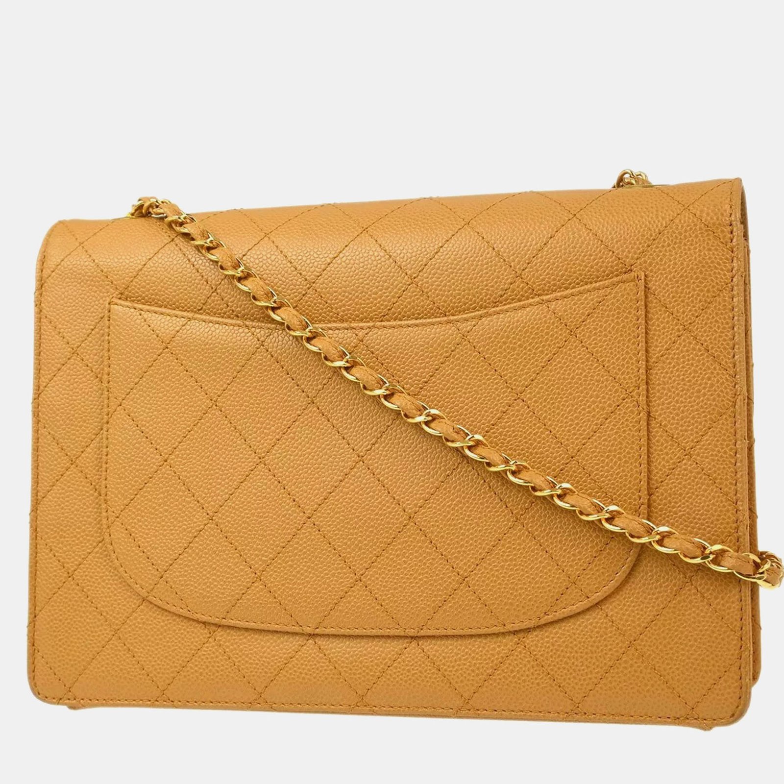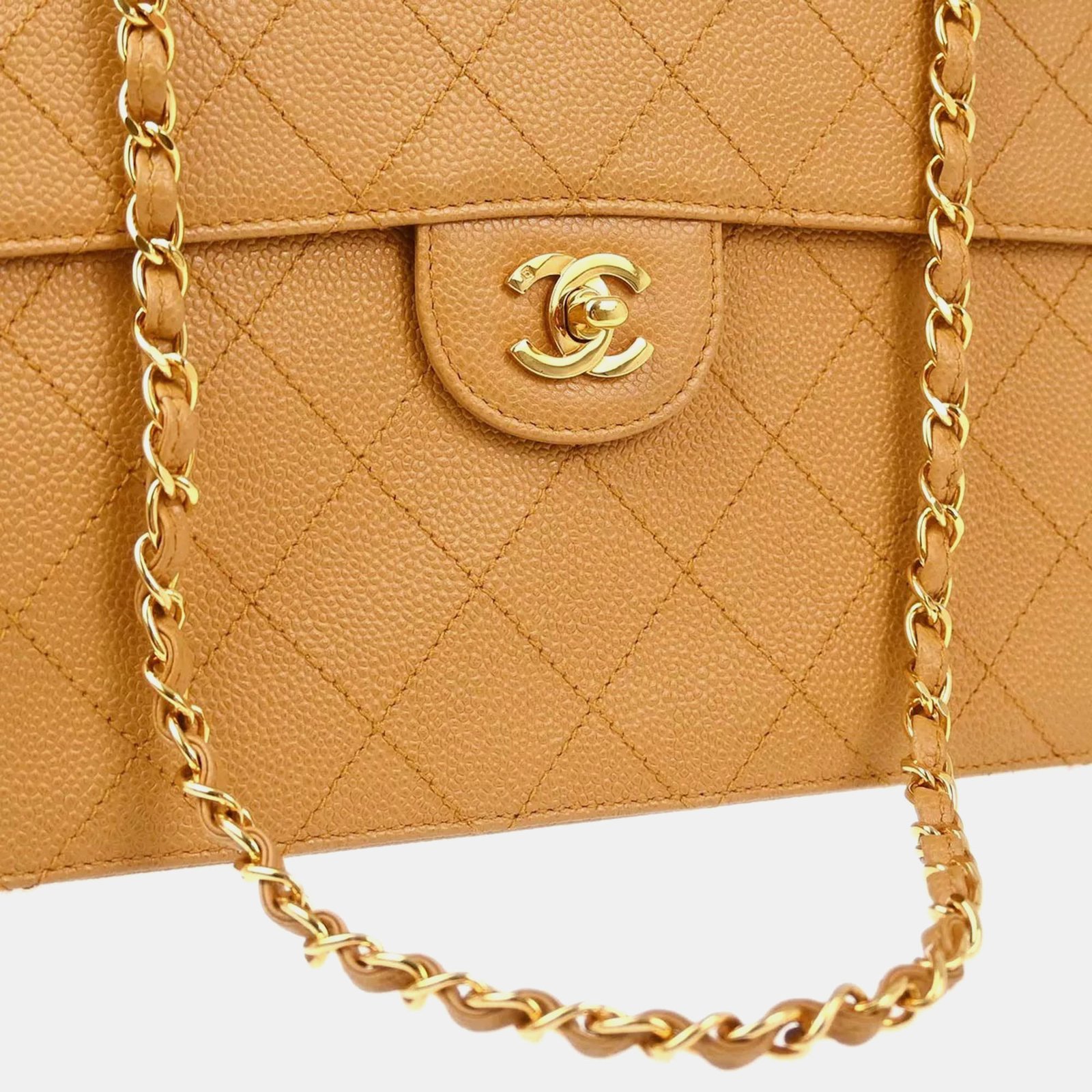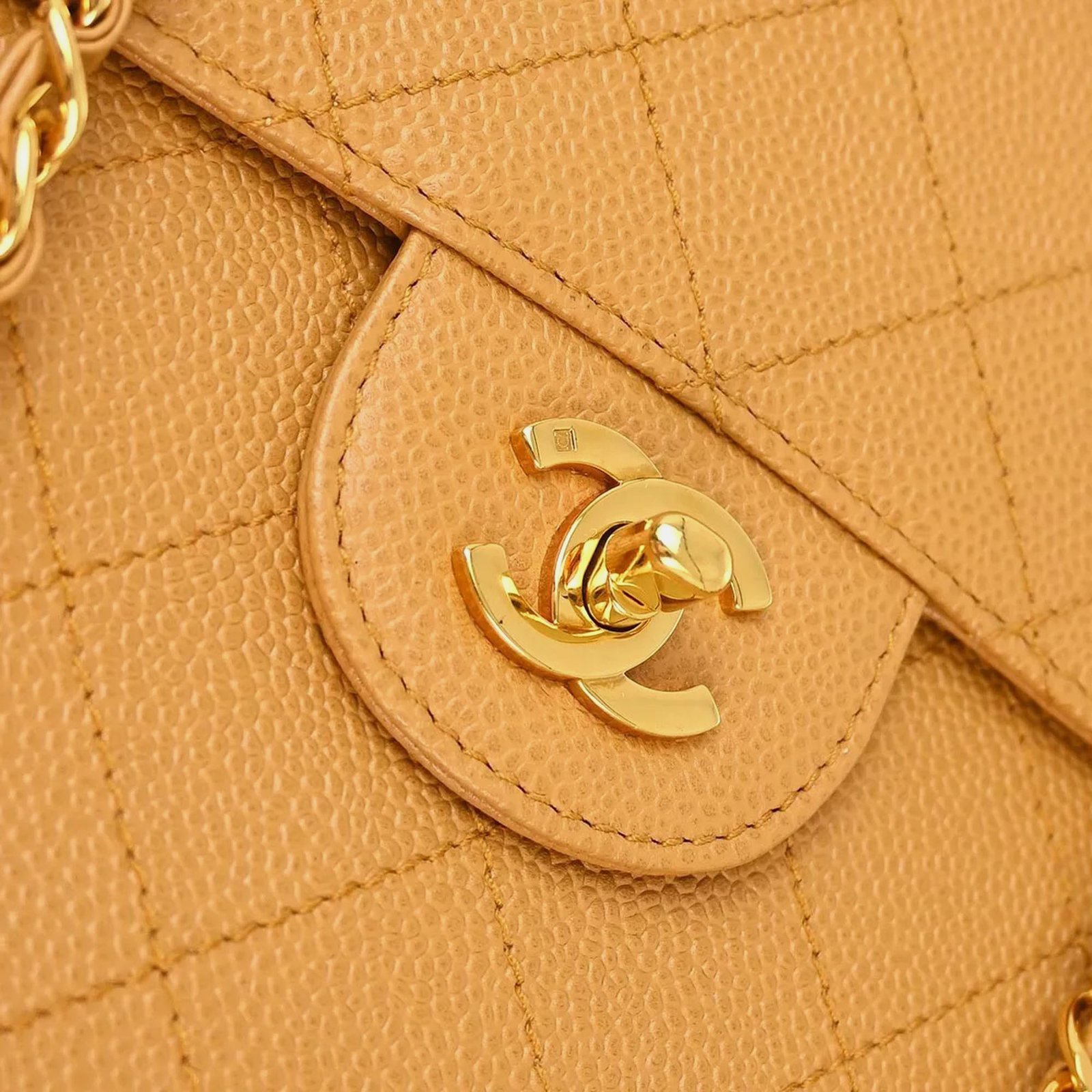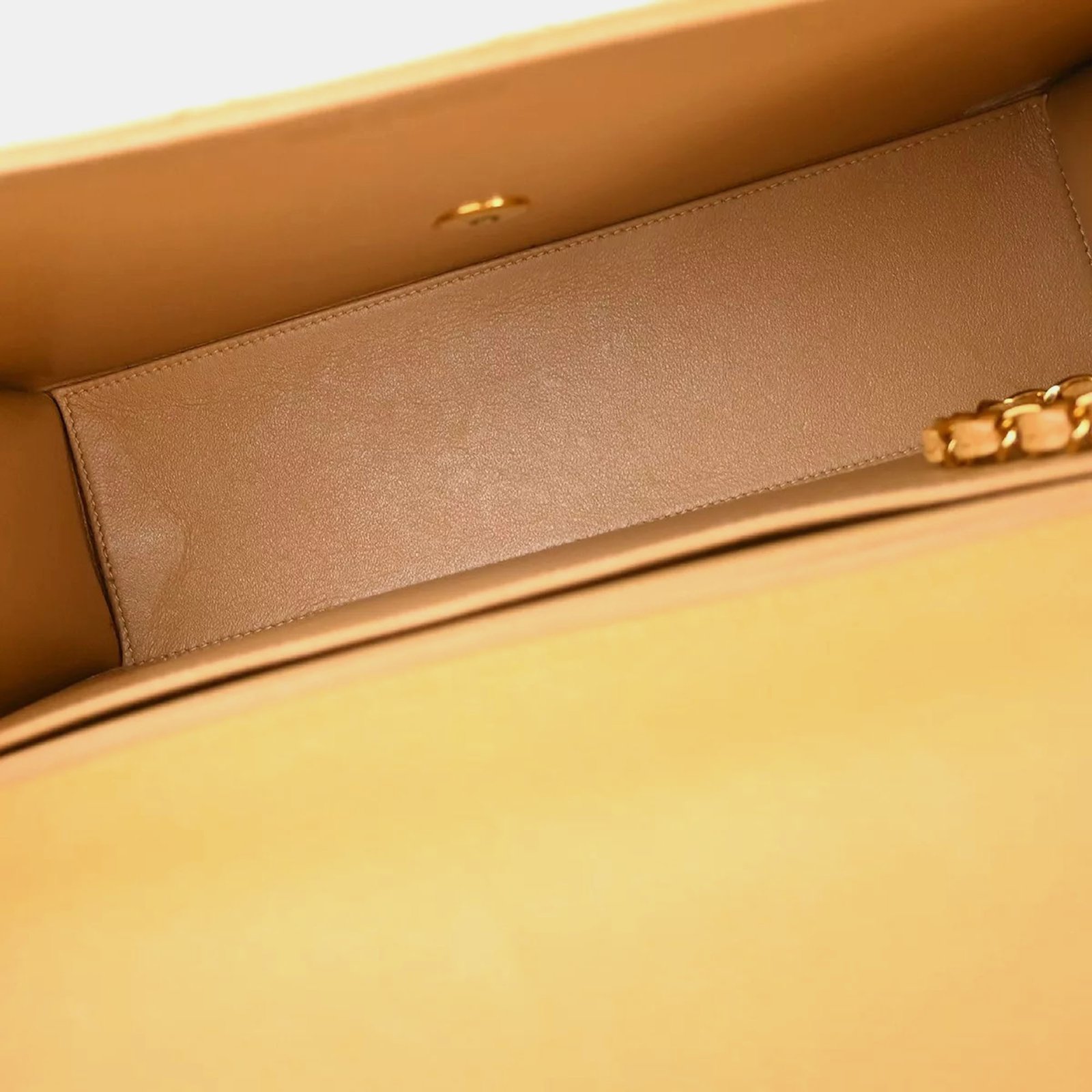 Chanel Beige Calfskin Single Flap Shoulder Bag