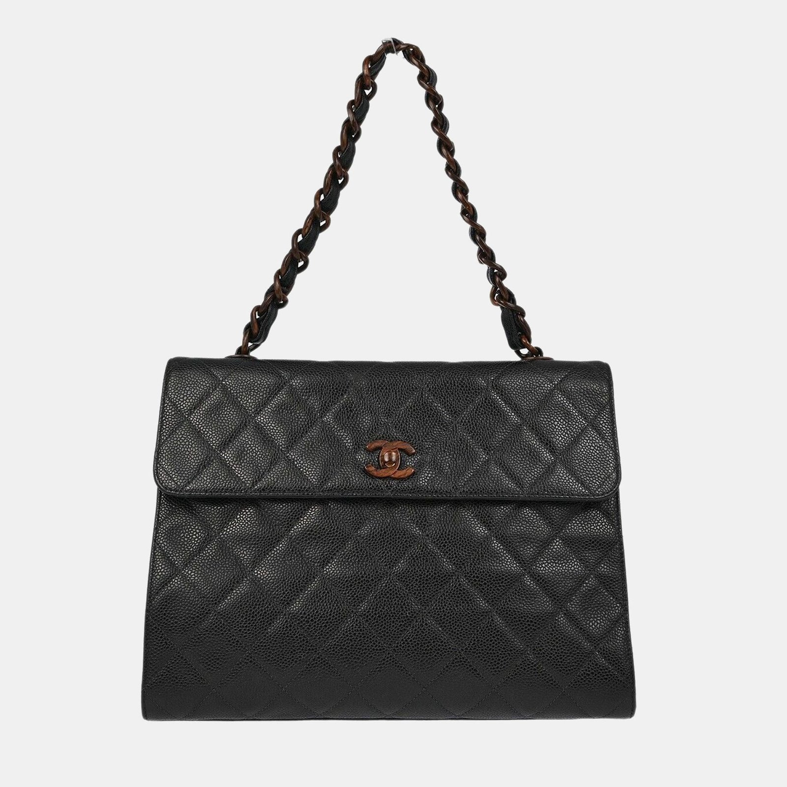 Chanel Black Calfskin Straight Flap Chain Handbag