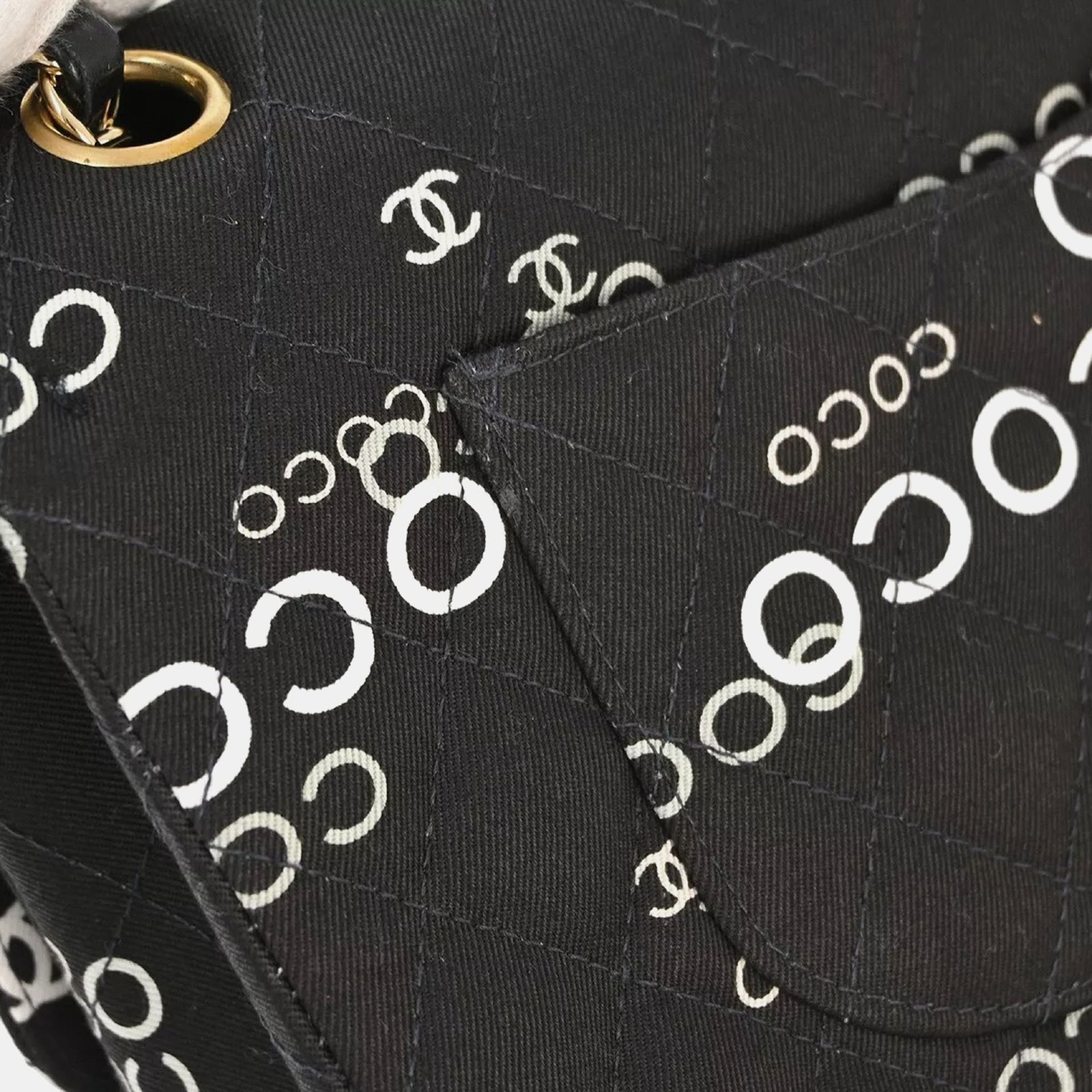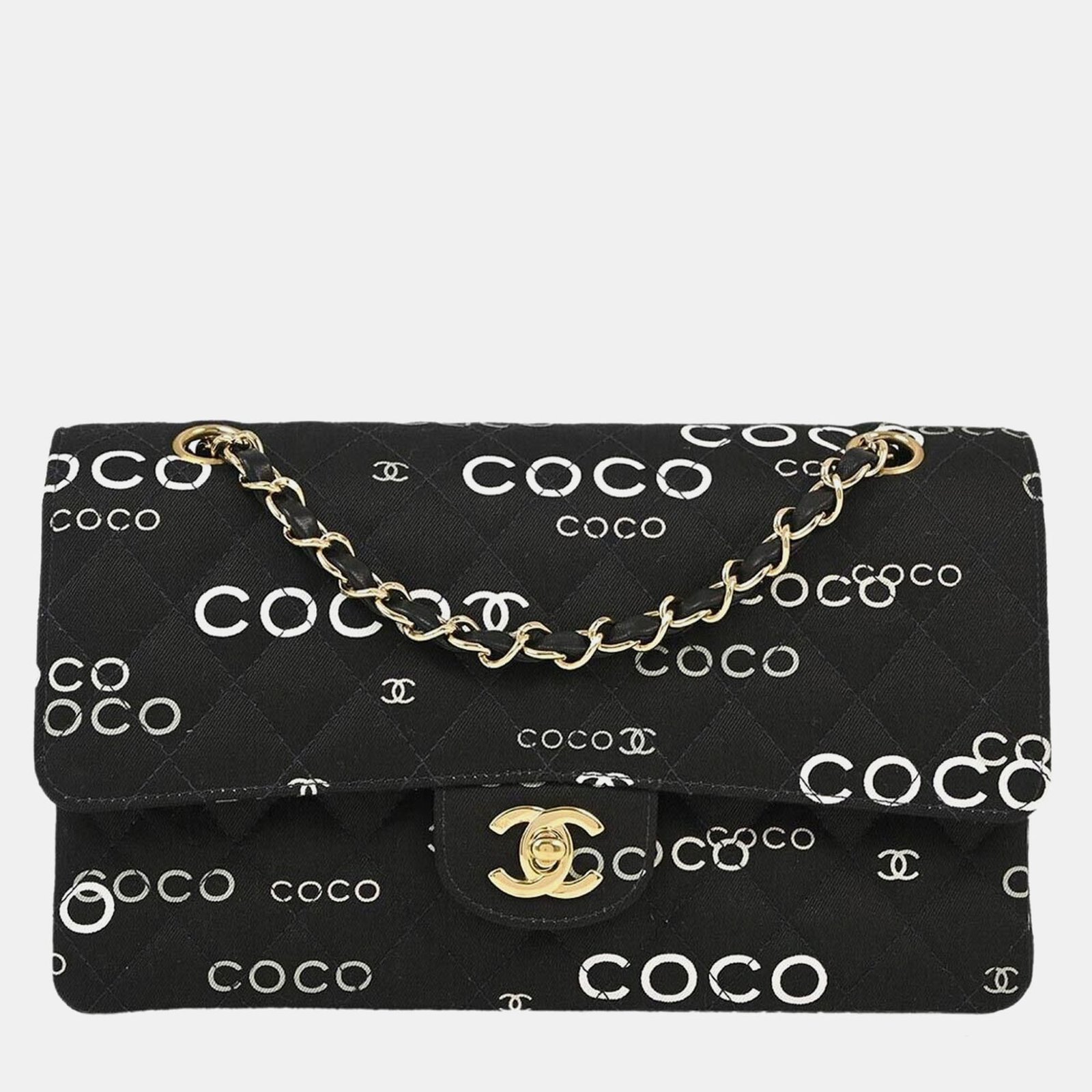 Chanel Black Canvas Coco Medium Classic Double Flap Shoulder Bag