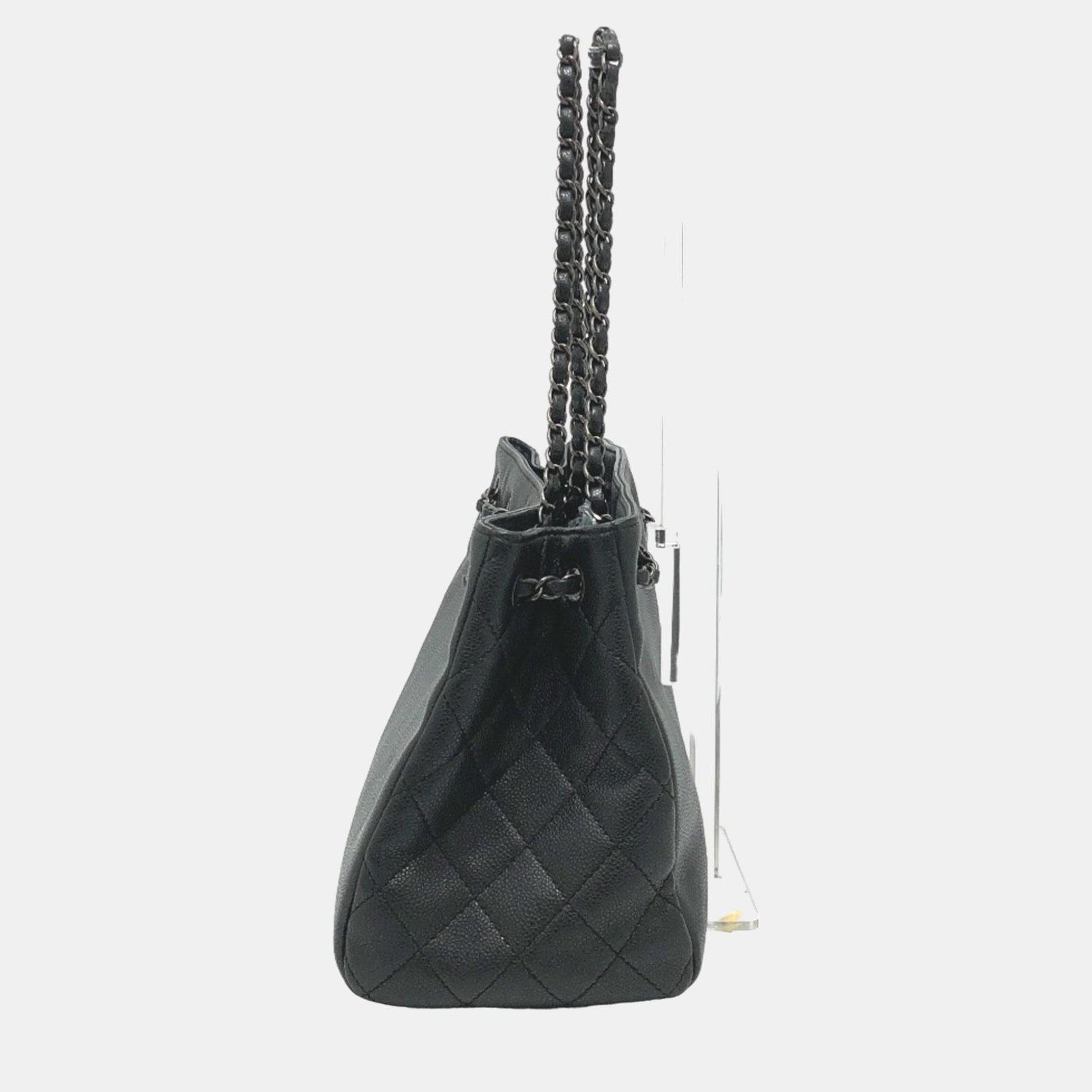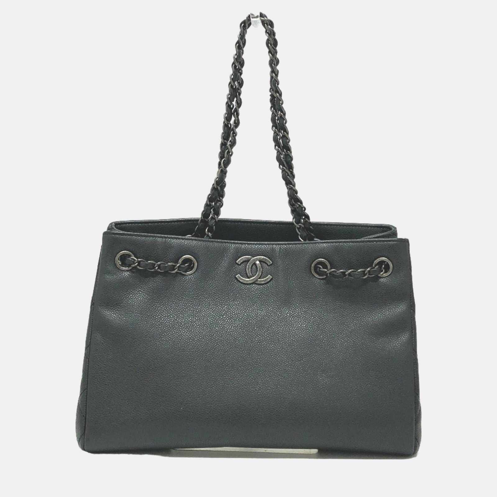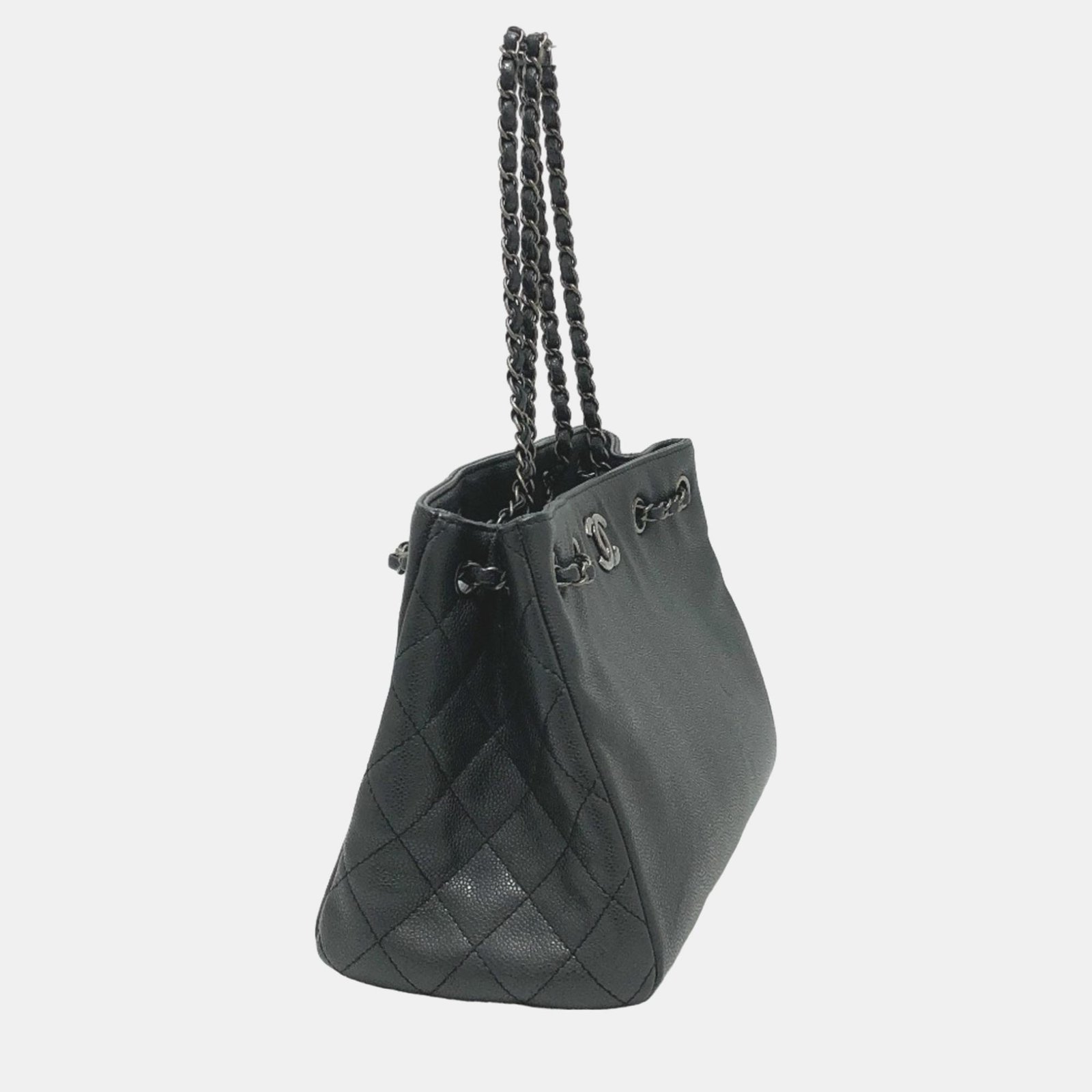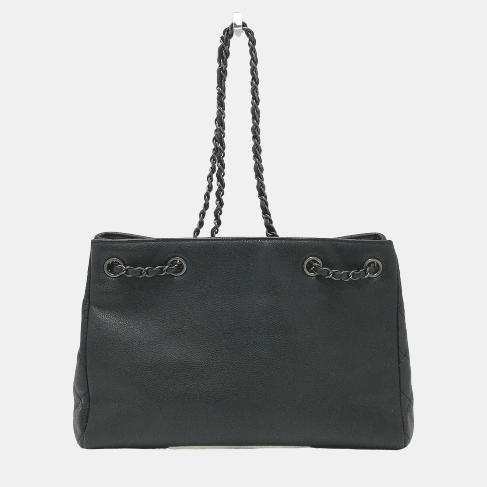 Chanel Black Caviar Large Woven Chain Shopping Tote Bag