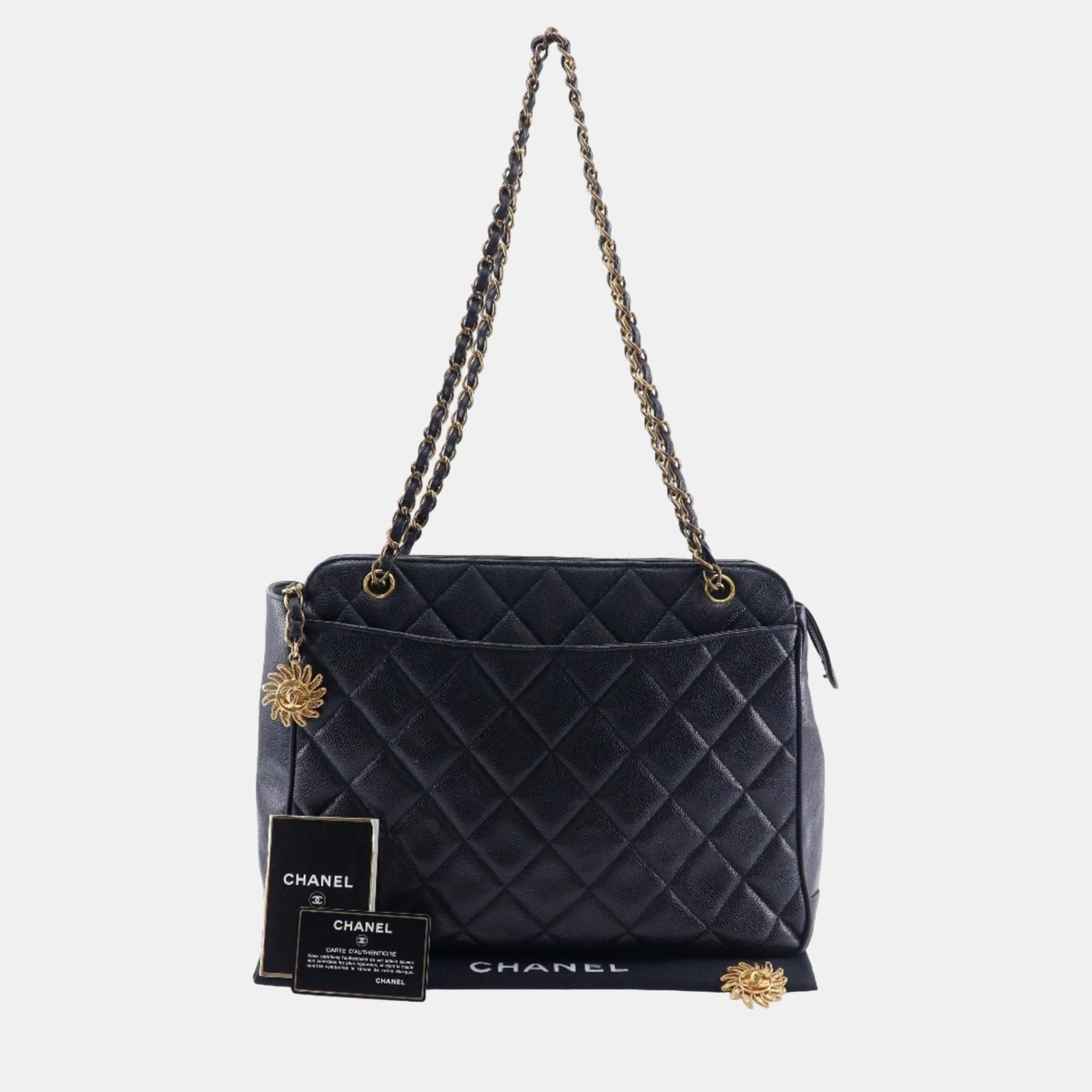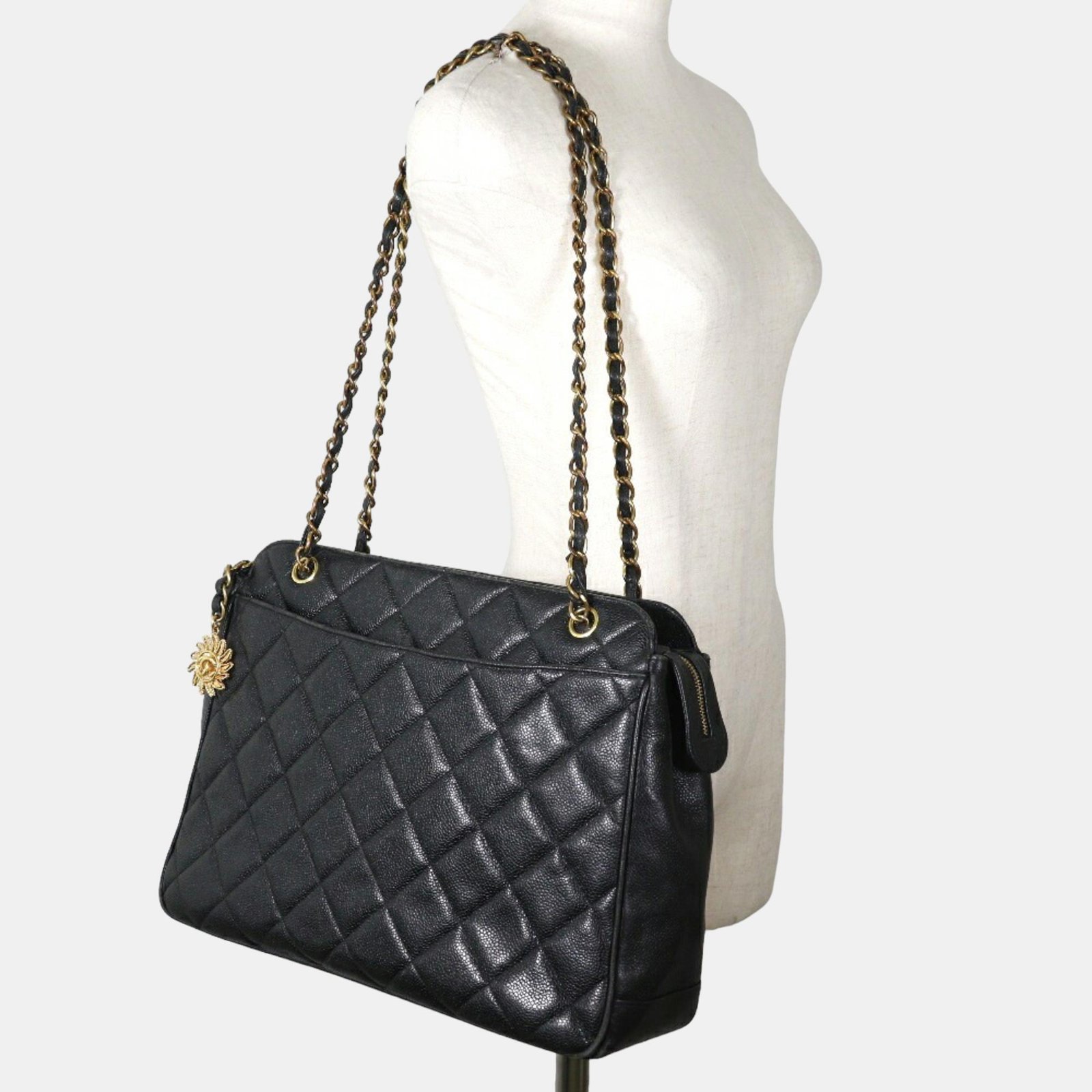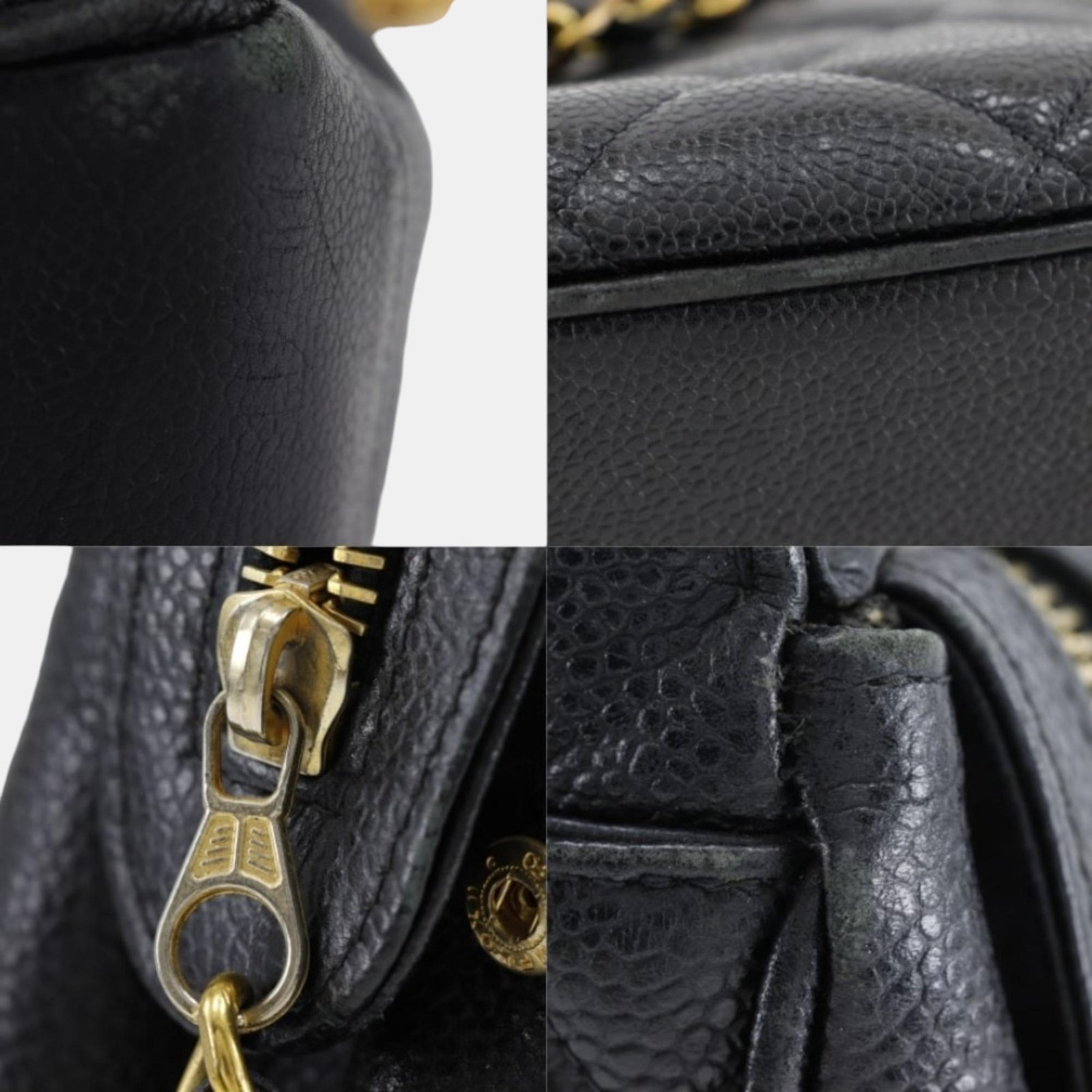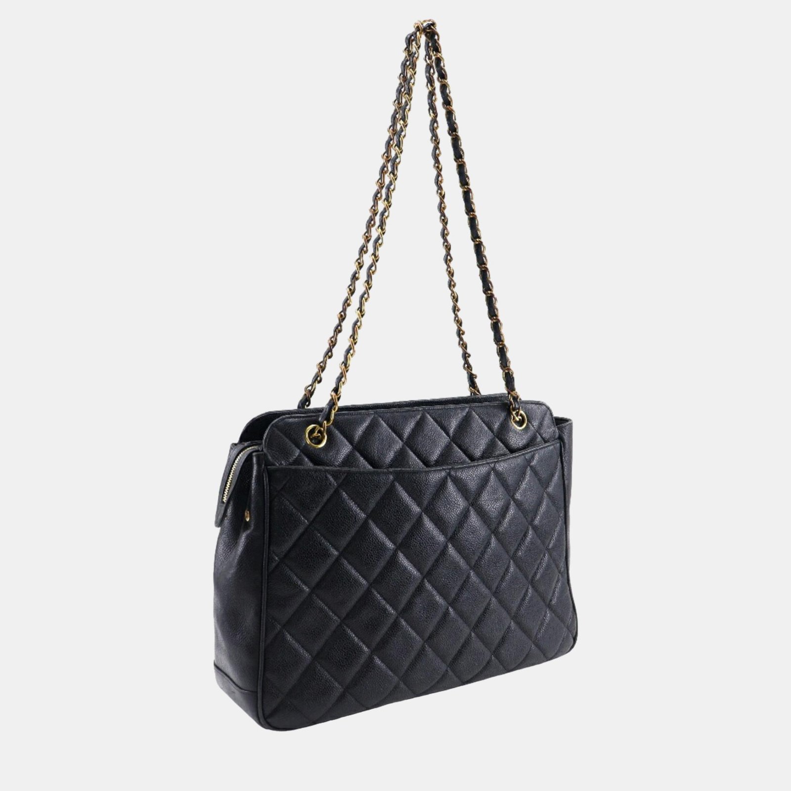 Chanel Black Caviar Leather Quilted Chain Shoulder Bag
